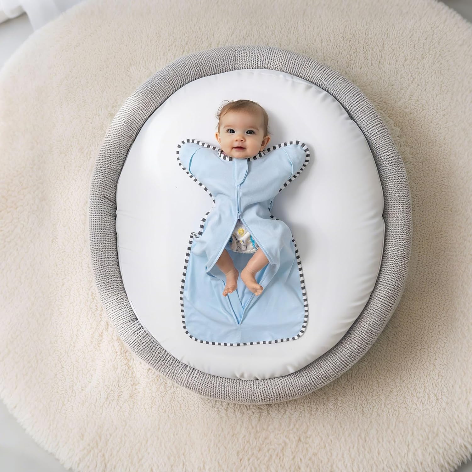 - UNIQUE ARM UP SWADDLE DESIGN: The unique cuffs with mitten of the transition swaddle provides babies with a enough arm stretch room, it can help to maintain an established sleep routine, allow your baby to sleep through the night, and move to arms-free sleeping.