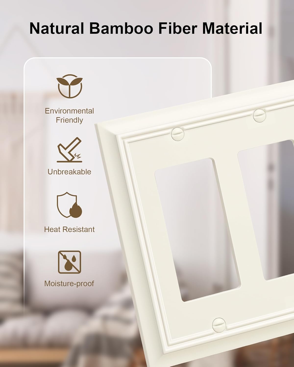 - Natural Bamboo Fiber Material - The wall plate covers are made from sustainable and environmentally friendly bamboo fiber, much thicker and more robust than plastic covers, easier to clean. Resistant to heat, moisture, and corrosion, ensuring it remain a stunning addition to your home for years to come.
