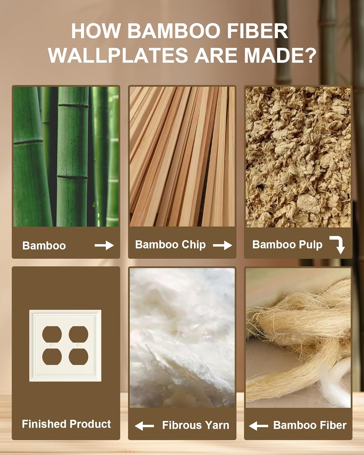- Natural Bamboo Fiber Material - The wall plate covers are made from sustainable and environmentally friendly bamboo fiber, much thicker and more robust than plastic covers, easier to clean. Resistant to heat, moisture, and corrosion, ensuring it remain a stunning addition to your home for years to come.