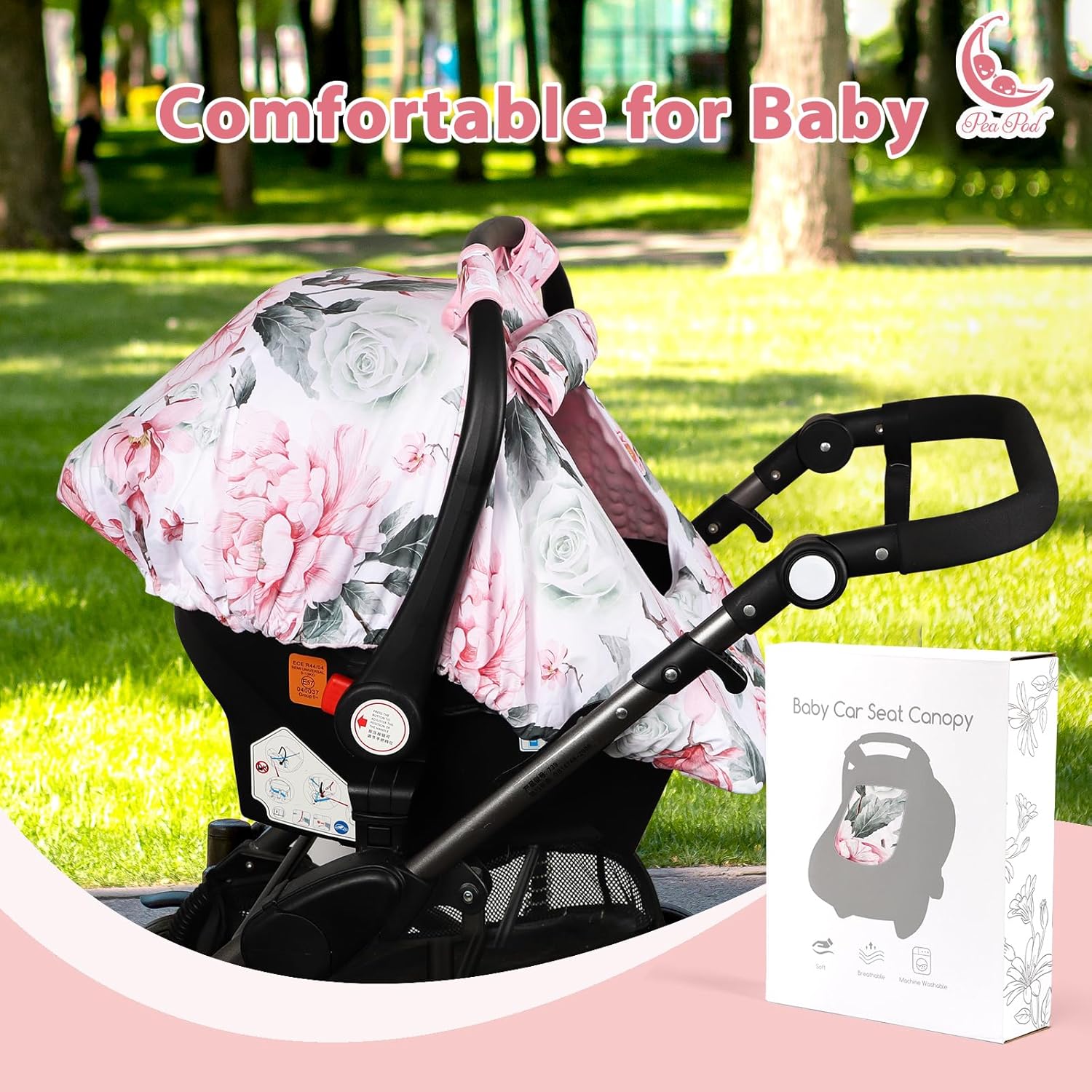 - Perfect Baby Essentials: If you are considering a decent and affordable baby shower gift, our floral baby car seat cover must be a good choice. It is a great necessity for any mom to be or dad to be. With rich color, very eye catching and pretty. It is a perfect baby essential for a newborn