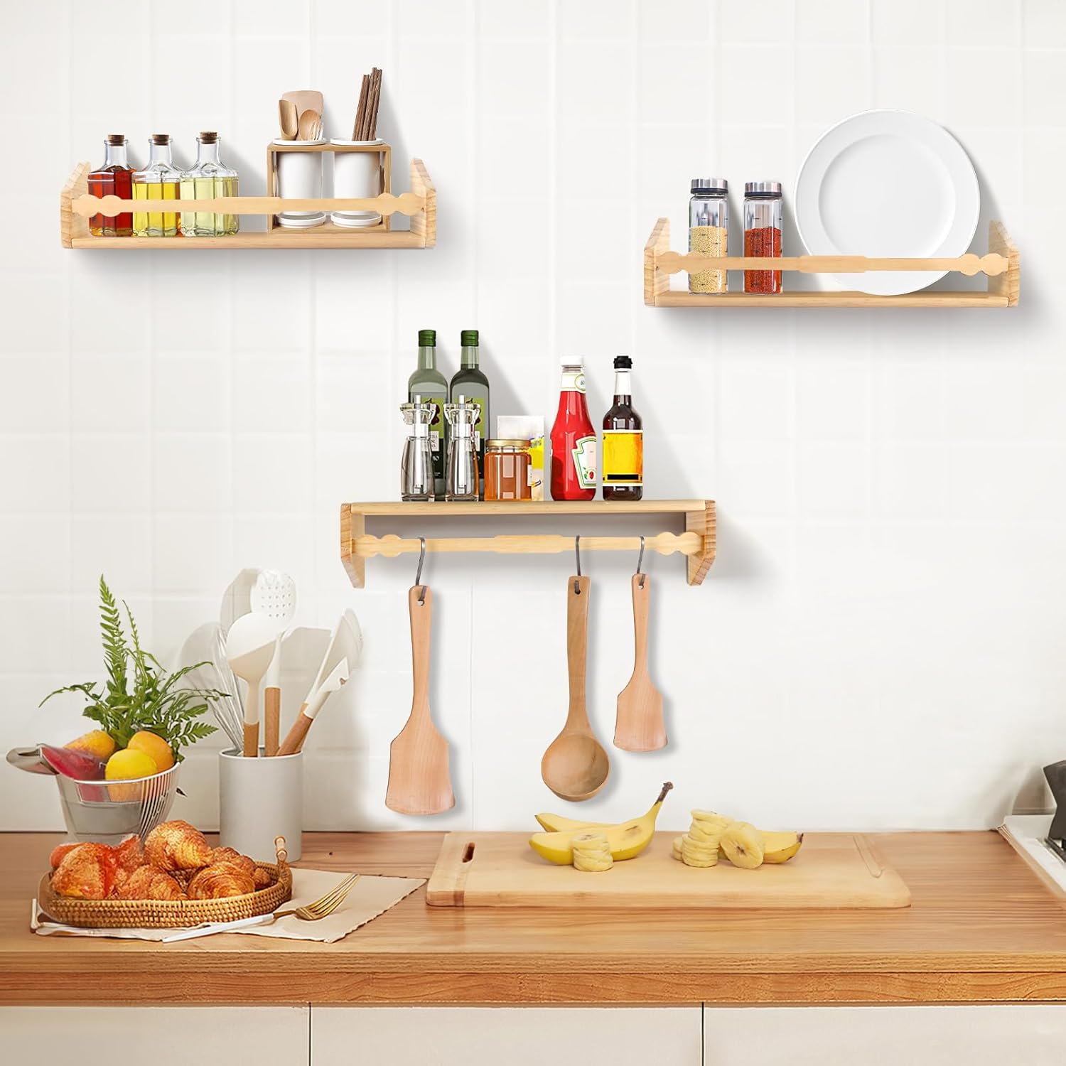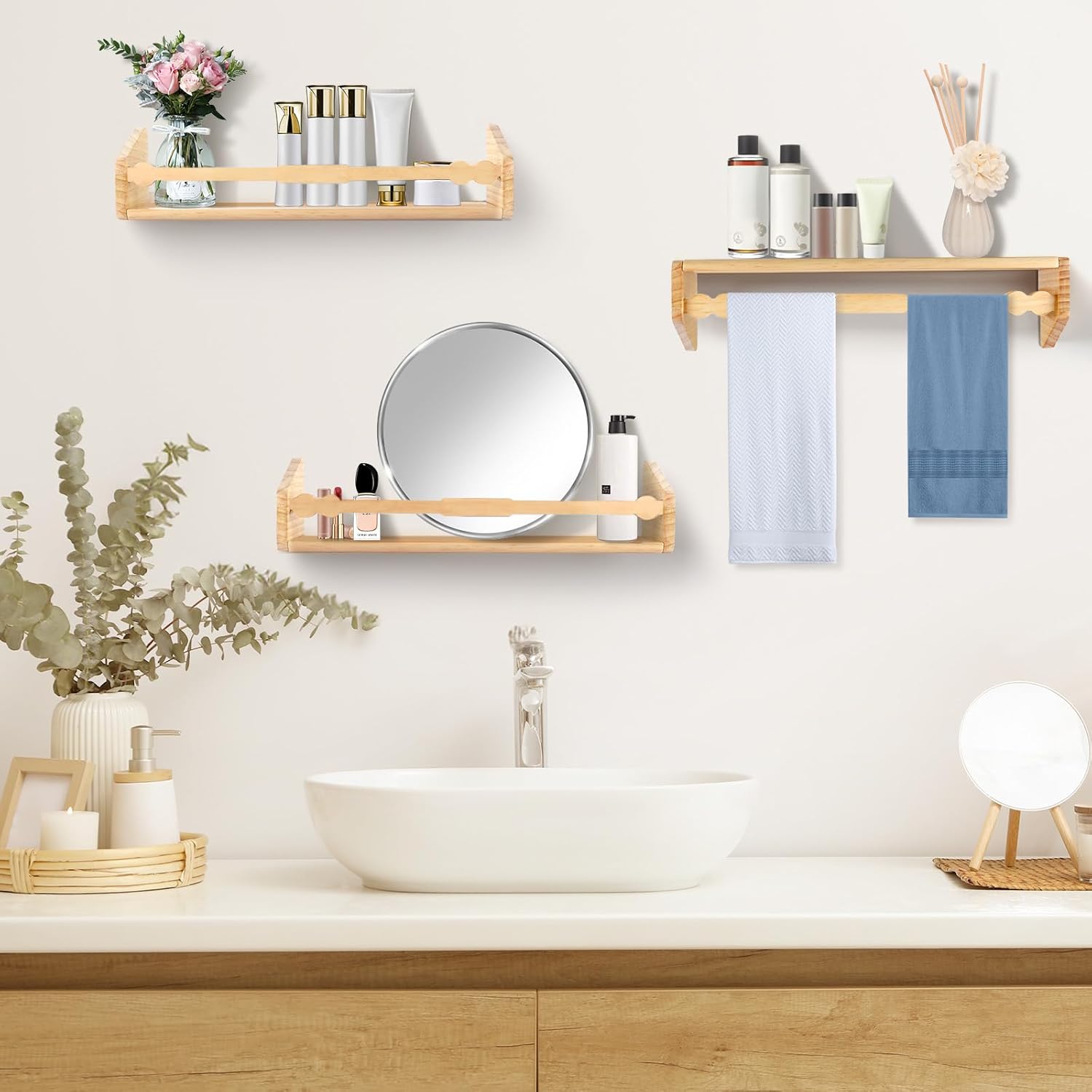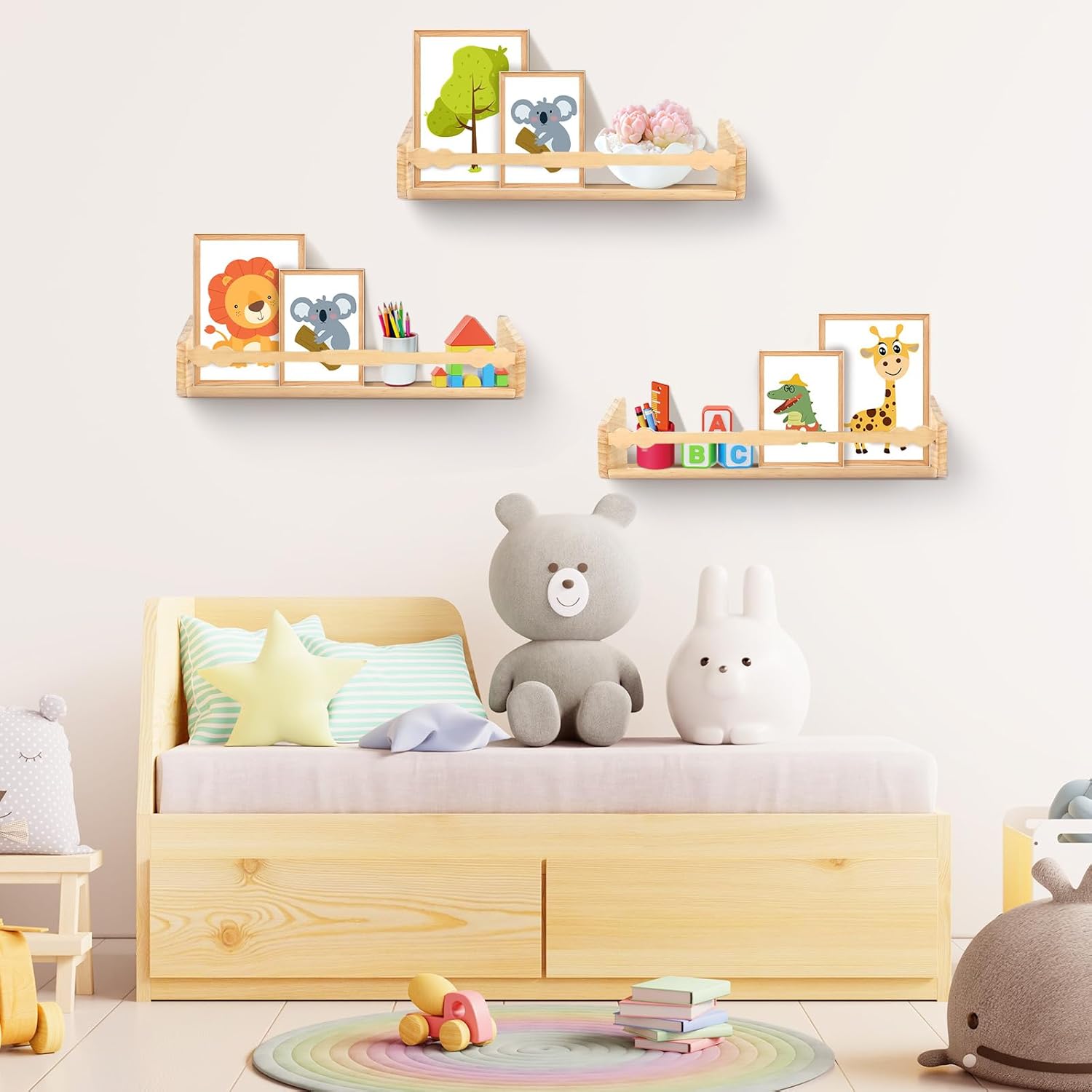 comfoyar Nursery Book Shelves Set of 3, 15.7 Inch Solid Pine Floating Shelves for Wall, Hanging Bookshelf for Kids Boys Girls Baby, Decoration for Bedroom Kitchen Bathroom Playroom, Natural