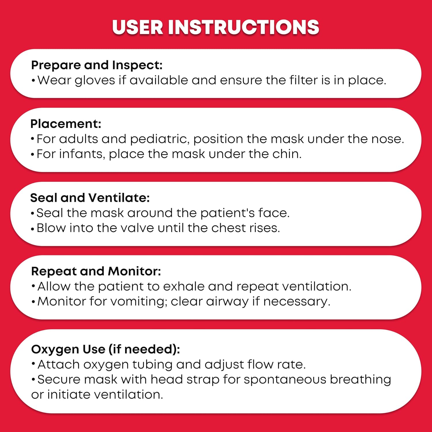 - SAFE & RELIABLE ONE-WAY VALVE DESIGN – Designed with a high-quality one-way filter valve and latex-free elastic head strap for a secure, hands-free fit to ensure effective resuscitation.