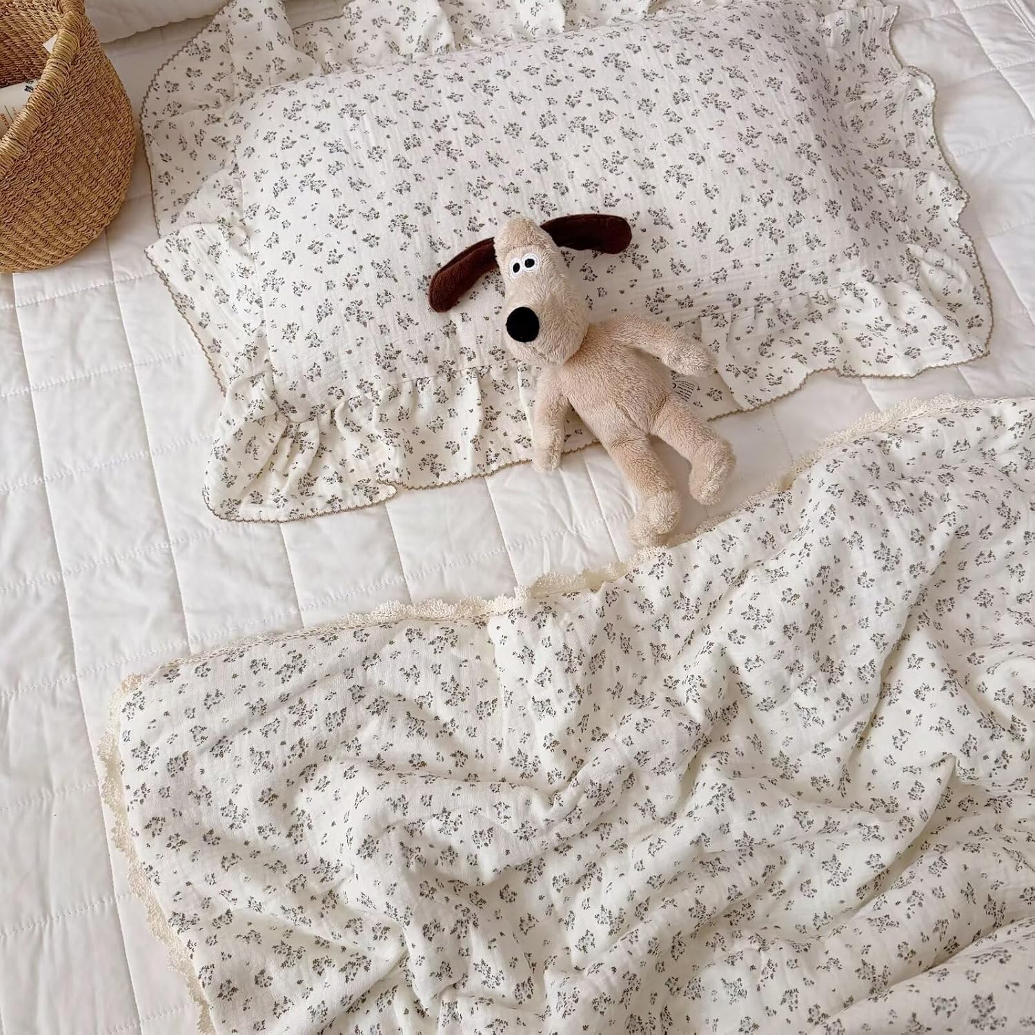 - 【Cute Pattern】 Cotton muslin toddler kids pillow covers designed with blue plumbagoflower patterns and ruffles on the edges. The chic shabby style is suitable for both girls and boys.【Please understand this is just pillow cover, the pillow insert/filling NOT included.】