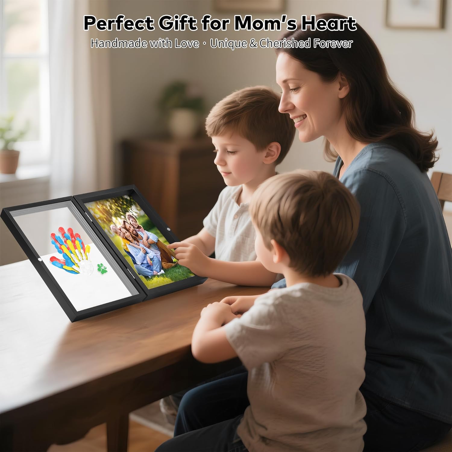 - EVERLASTING FAMILY TIME CAPSULE: Capture the fleeting moments of your child's growth in timeless elegance–each handprint tells a story that grows more precious as the years pass. Create your own artwork for your home with our lovely family handprint kit. Use the paints to print your hands on the insert, then display in the frame included