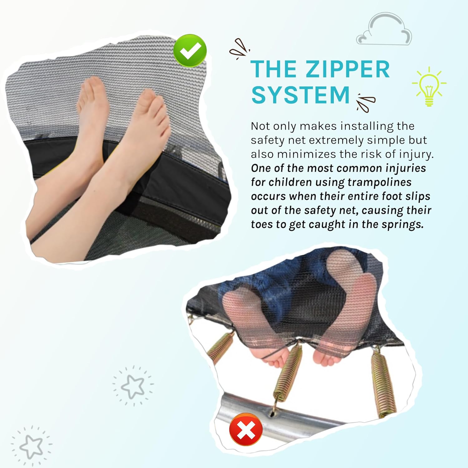 - [ Smart Zipper System, NO-GAP! ]: The innovative zipper system design of our 6ft kids trampoline makes net installation extremely easy, while also ensuring a seamless connection between the mat and the net.