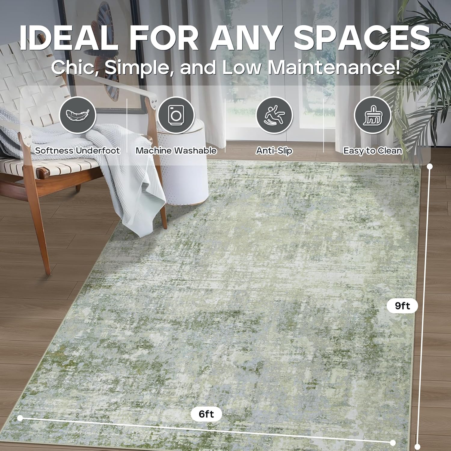 - Non-Slip & Non-Shedding Design: Enjoy peace of mind with our washable area rug, featuring an upgraded TPE rubber backing. Say goodbye to slipping or sliding—the 6x9 rug stays securely in place, making it perfect for homes with young children or elderly family members. Its strong grip ensures safety while offering both comfort and style