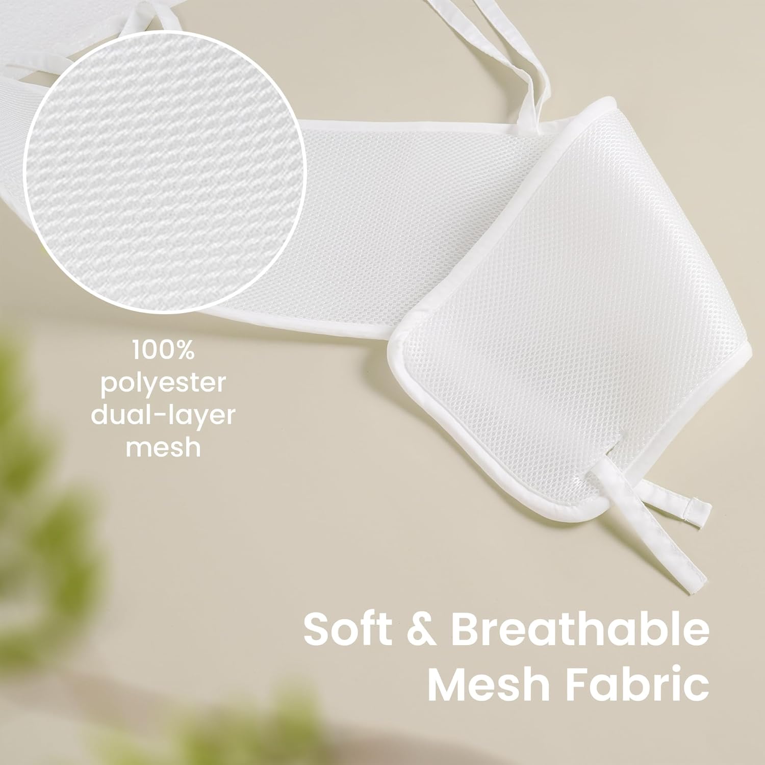 - Universal Fit & Neutral Design – This crib teething guard features flexible mesh and long ties to fit most crib styles and rail sizes. The clean white color and simple design blend well with any nursery décor, whether for a boy or girl, and suit both classic and modern themes.