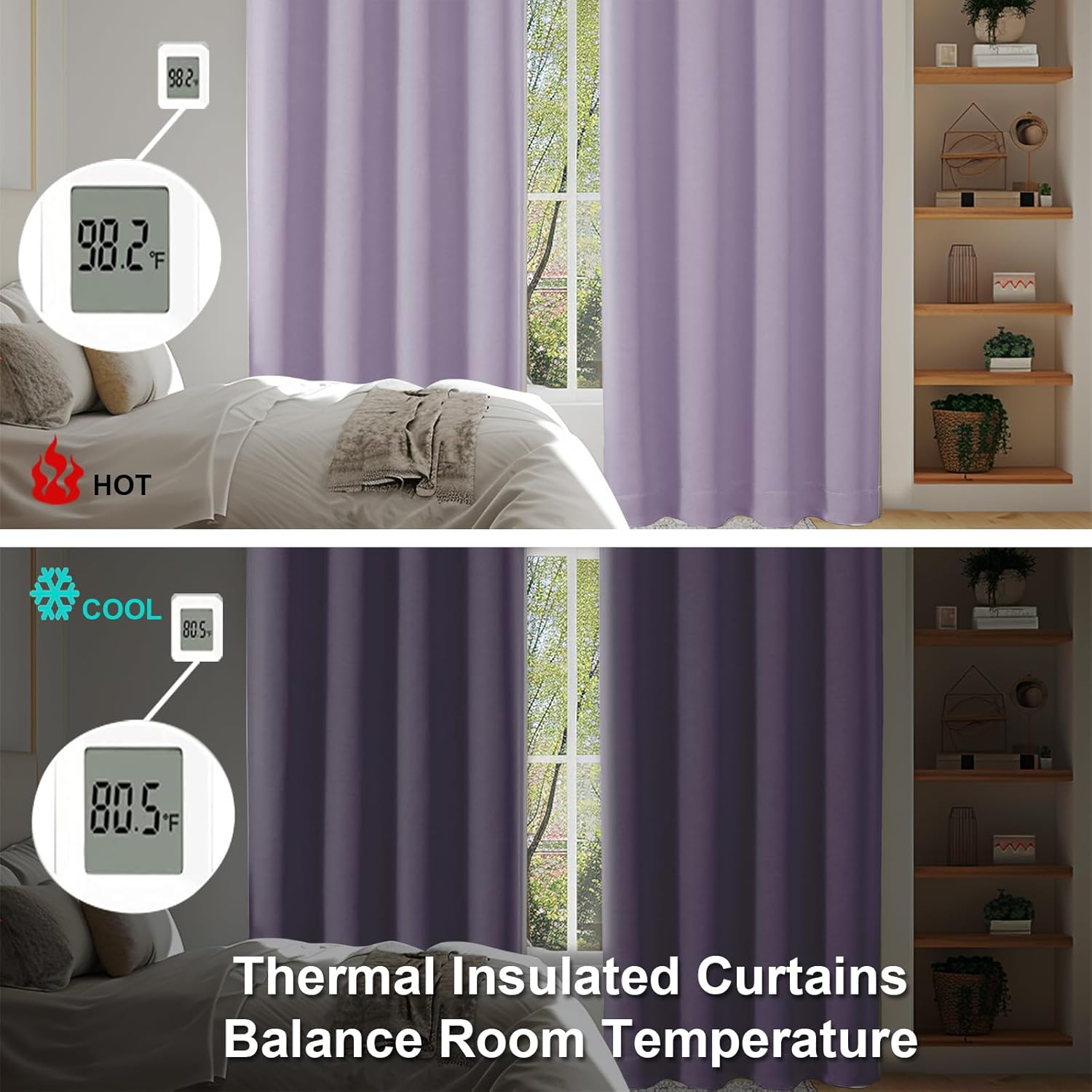 Simplebrand Ava Lilac Blackout Curtains for Bedroom 84 Inch Length 2 Panels Set, Solid Thermal Insulated Privacy Nursery Window Treatment Curtains Blackout Drapes, W40 x L84 Inch, Lilac