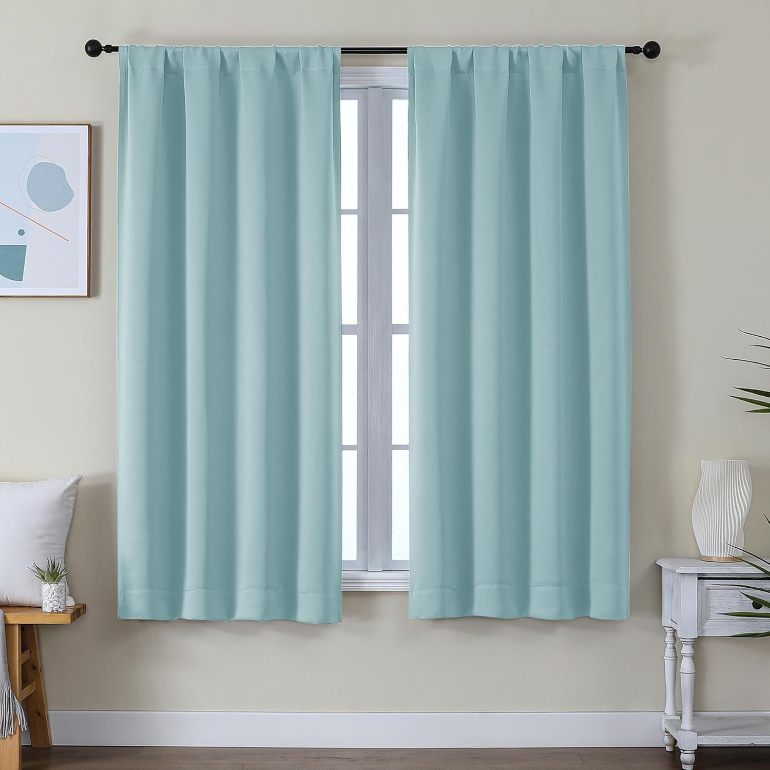 Simplebrand Ava Aqua Blackout Curtains for Bedroom 63 Inch Length 2 Panels Set, Nursery Thermal Insulated Energy Saving Rod Pocket Window Treatment Curtains Blackout Drapes, W40 x L63 Inch, Aqua