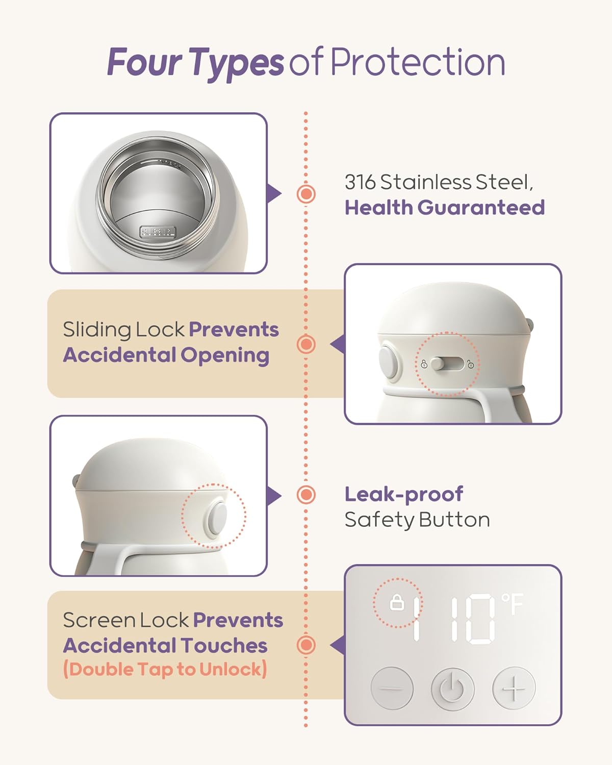 - Fast Heating and Warming: Our portable bottle warmer heats 4 oz of water to 104°F in just 2 min, and warms 4 oz of milk to 99°F in only 1:30 min—faster than most other warmers. Always have milk ready right when you need it.