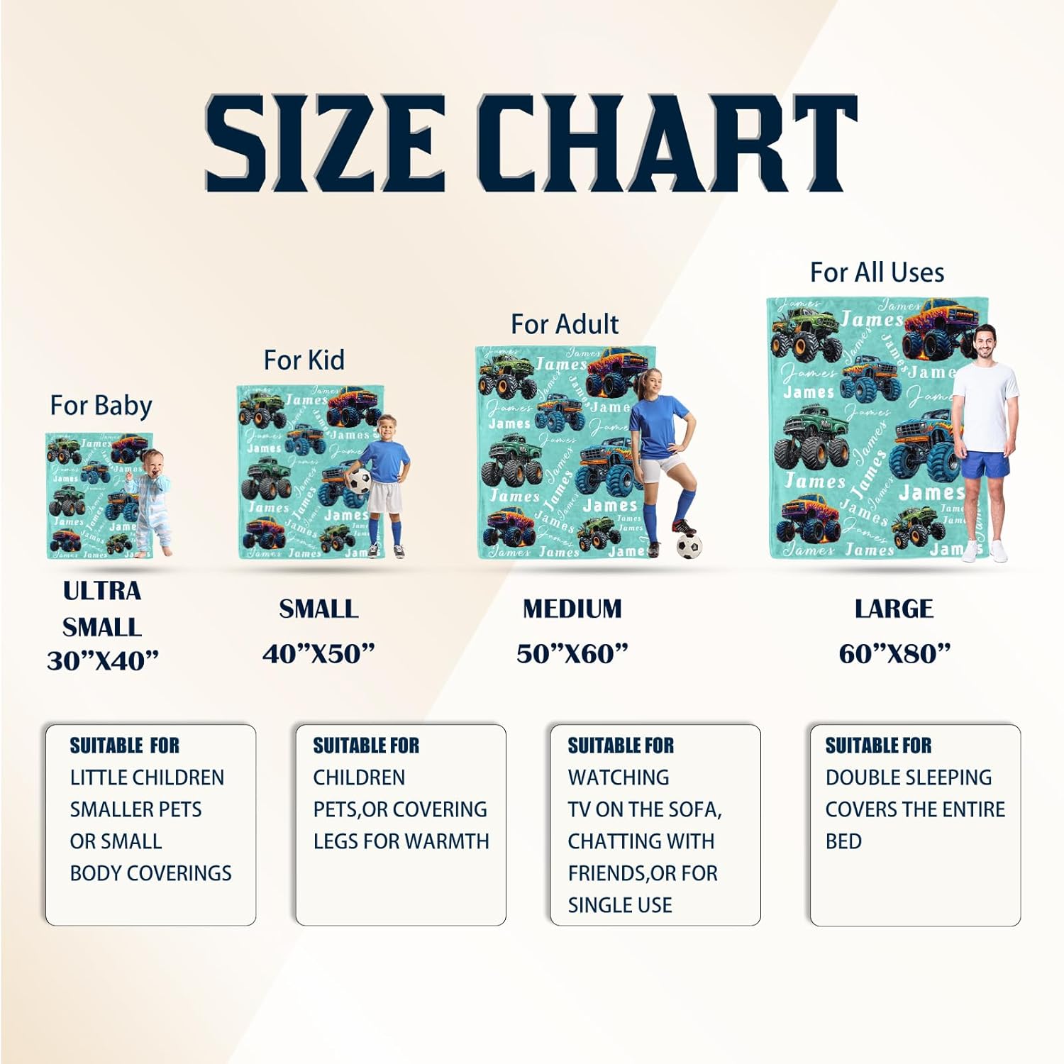 Ship Next Day, Personalized Truck Blanket - Printed in USA, Custom Name Blankets for Kids with Big Off Road Auto Vehicle Graphic, Home Bedding Decor, Fun Birthday Gift for Boys&Girls Women Man