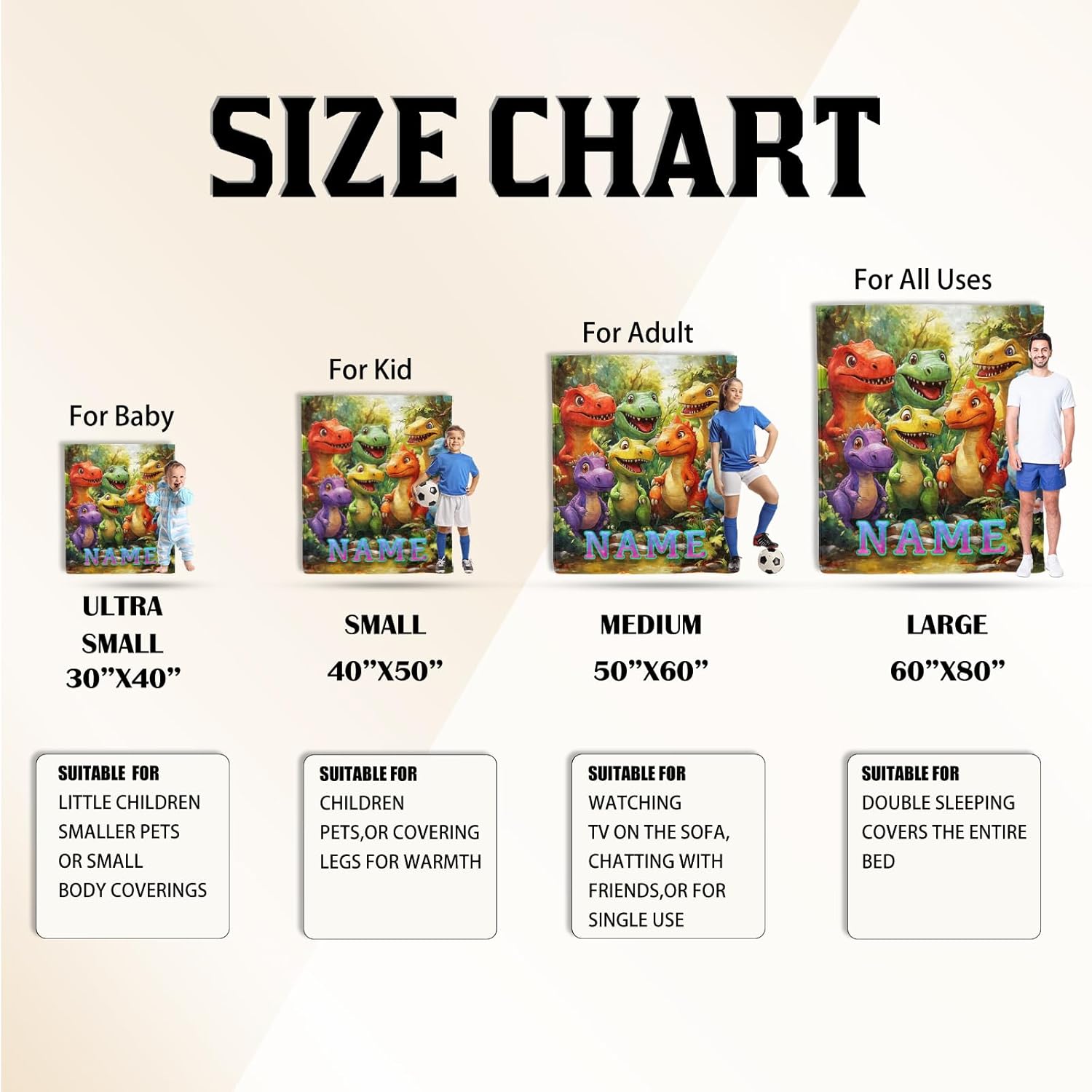 Ship Next Day, Custom Dinosaur Blanket - Printed in USA, Personalized Blankets with Name, Gift for Kids Boys Girls, Unique Present for Birthday, Christmas, Educational Blankets for Children