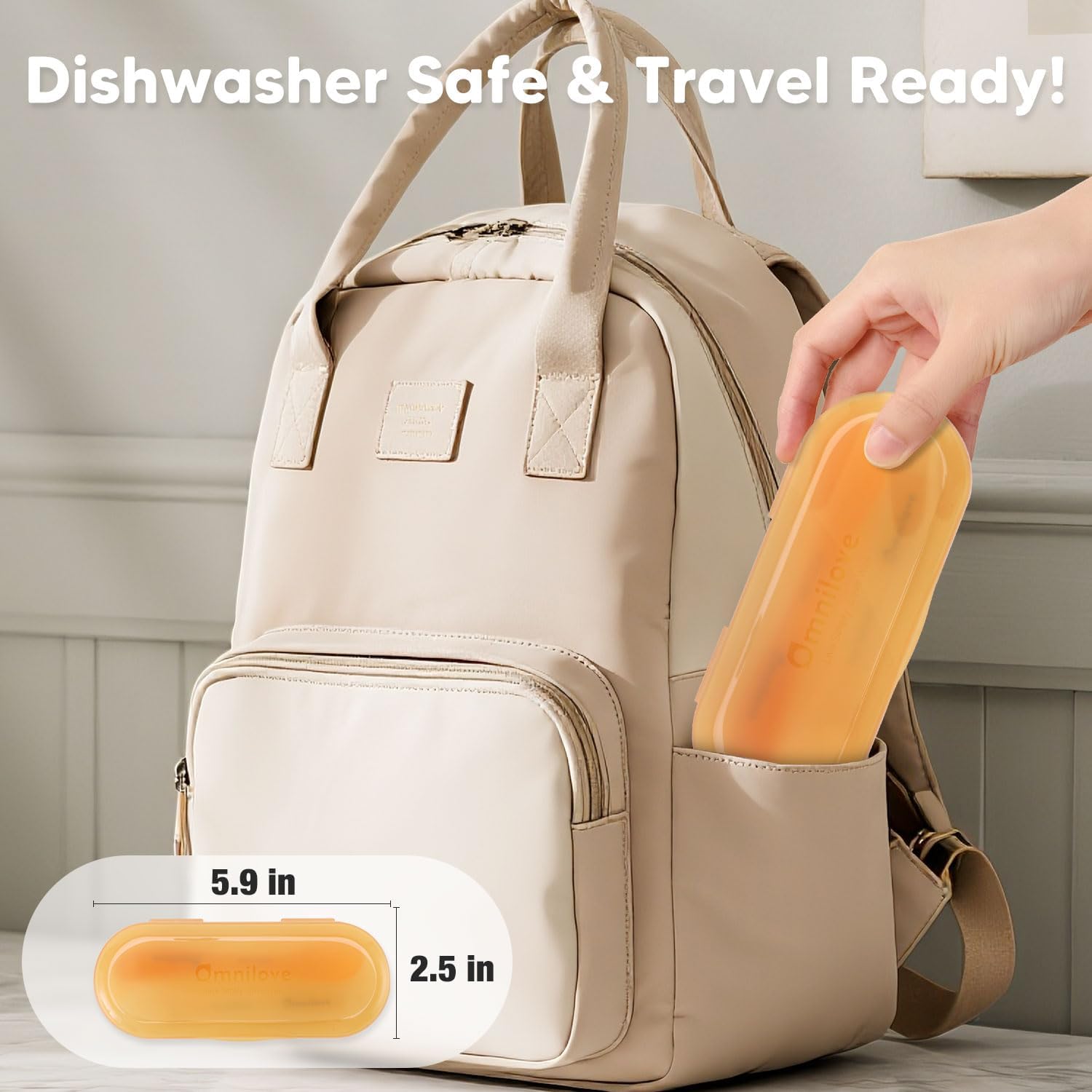 - Travel Utensils with Case & Safety Chain for On-the-Go Feeding This 2-pack of silicone baby spoons new born baby self feeding comes with a sturdy travel case and a safety chain to keep utensils clean and within reach. Compact and lightweight, these baby eating essentials fit easily into diaper bags, making them the perfect baby utensils for family outings, daycare, or meals on the move.