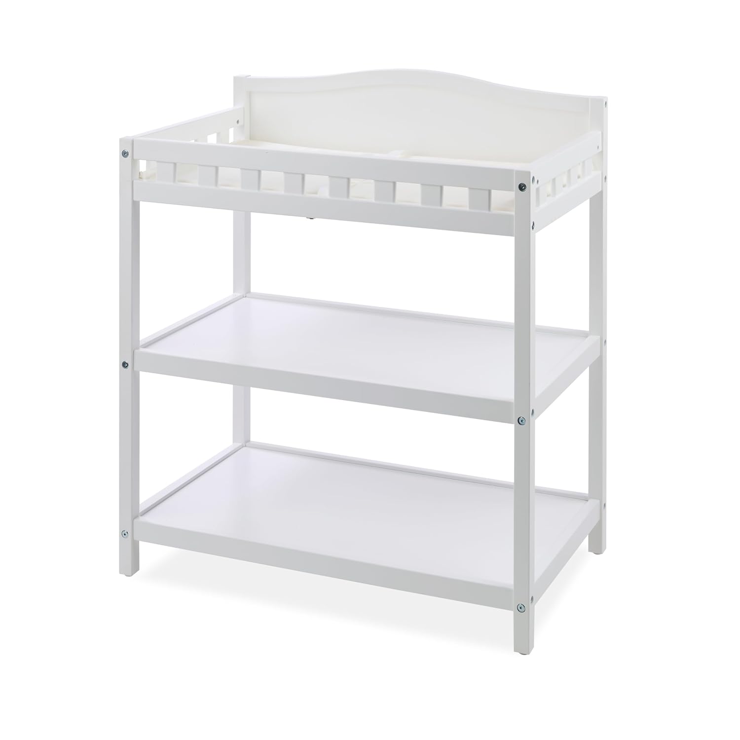 - SAFE & COMFY BABY CHANGING TABLE - Raised side rails help keep baby secure during diaper changes. The clean white finish adds a modern touch to your nursery while offering a comfortable changing space.