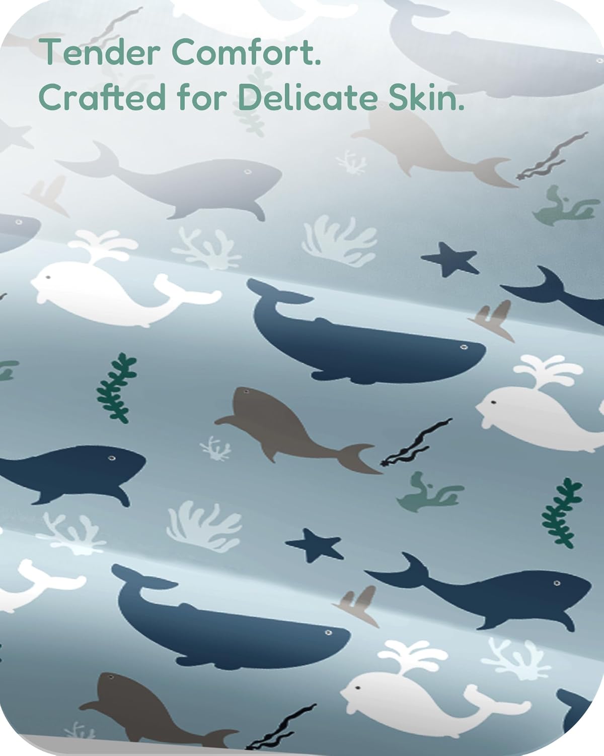 Baby Crib Sheets for Standard Crib Mattress - Navy Whale+Blue, Ultra Soft Jersey Knit, Breathable and Cozy, Fits 28''x52''x9'' Deep Pocket