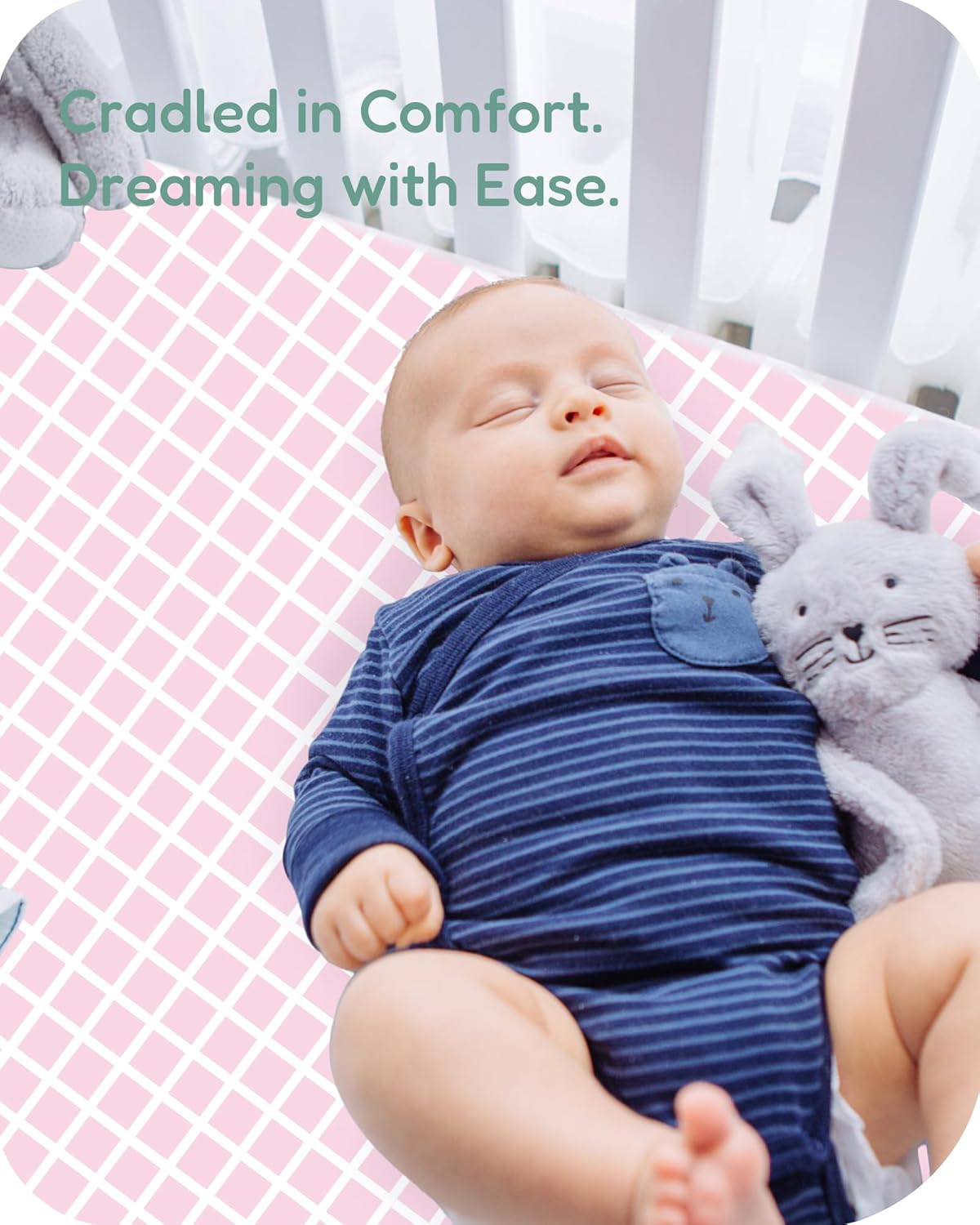 - 2-Pack Mini Crib Sheets: Each TotChill Baby Pack and Play Sheets set includes two fitted Mini crib sheets that perfectly fit standard nursery crib mattresses (38” x 24” x 5”), ideal for both boys and girls.
