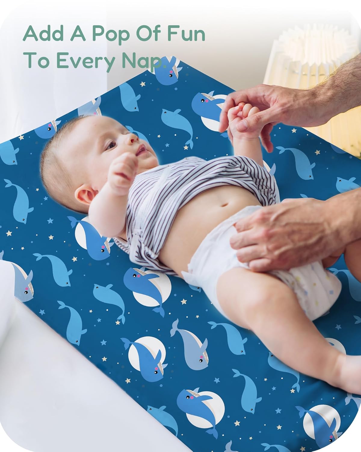 - Secure 360-Degree Elastic Fit: Designed with fully encased 360-degree elastic, this baby changing pad cover fits snugly around your changing pad, preventing slipping or shifting during diaper changes, providing a stable and secure surface for your baby.