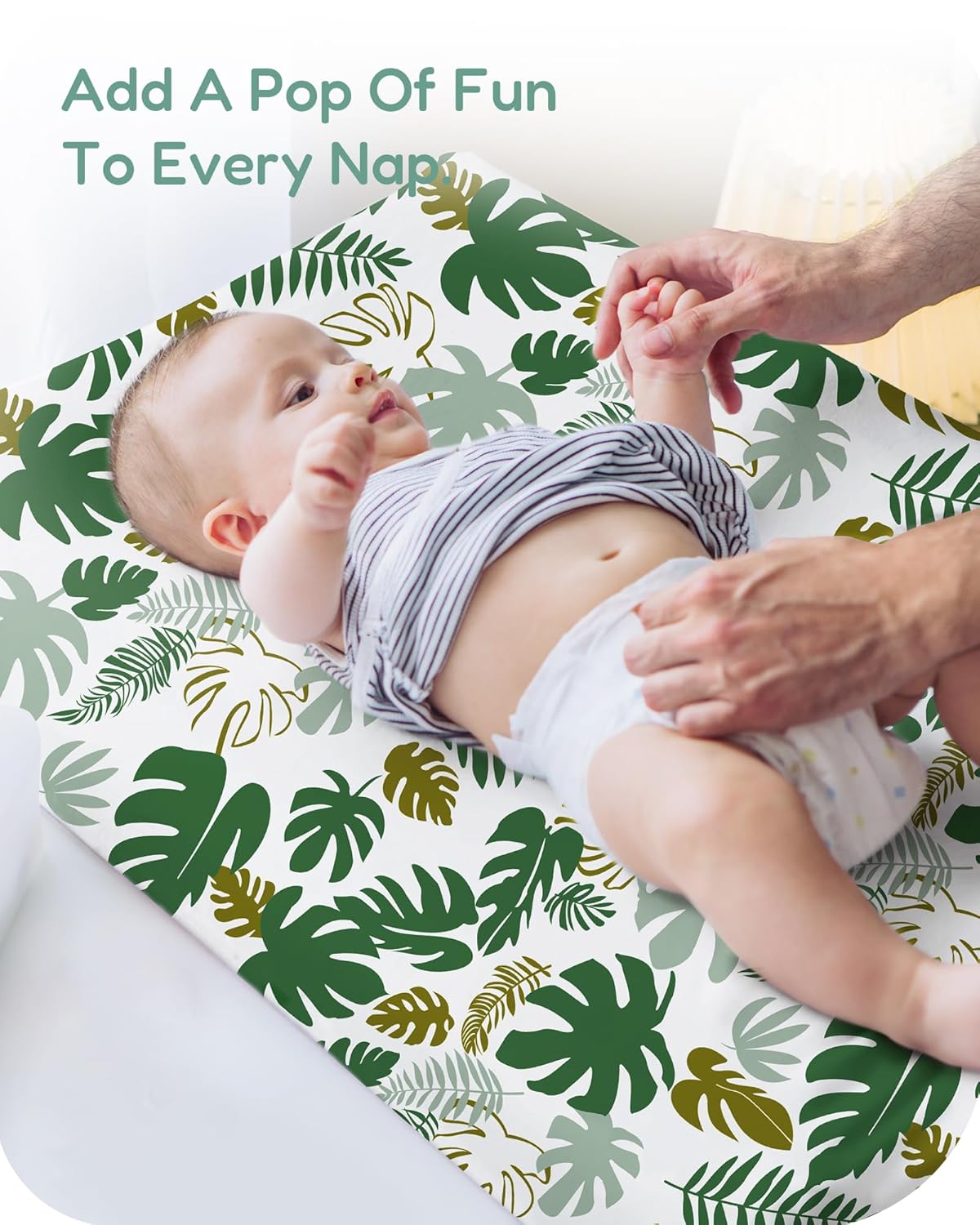 - Secure 360-Degree Elastic Fit: Designed with fully encased 360-degree elastic, this baby changing pad cover fits snugly around your changing pad, preventing slipping or shifting during diaper changes, providing a stable and secure surface for your baby.
