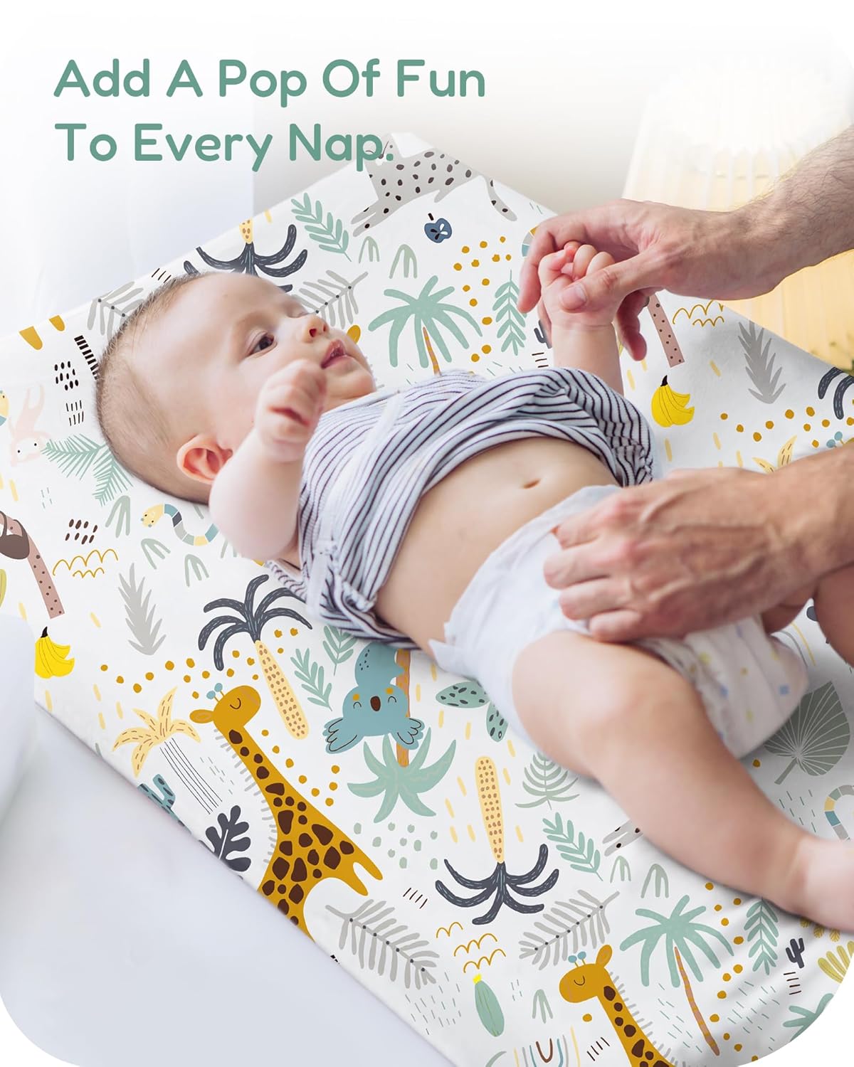 - Secure 360-Degree Elastic Fit: Designed with fully encased 360-degree elastic, this baby changing pad cover fits snugly around your changing pad, preventing slipping or shifting during diaper changes, providing a stable and secure surface for your baby.
