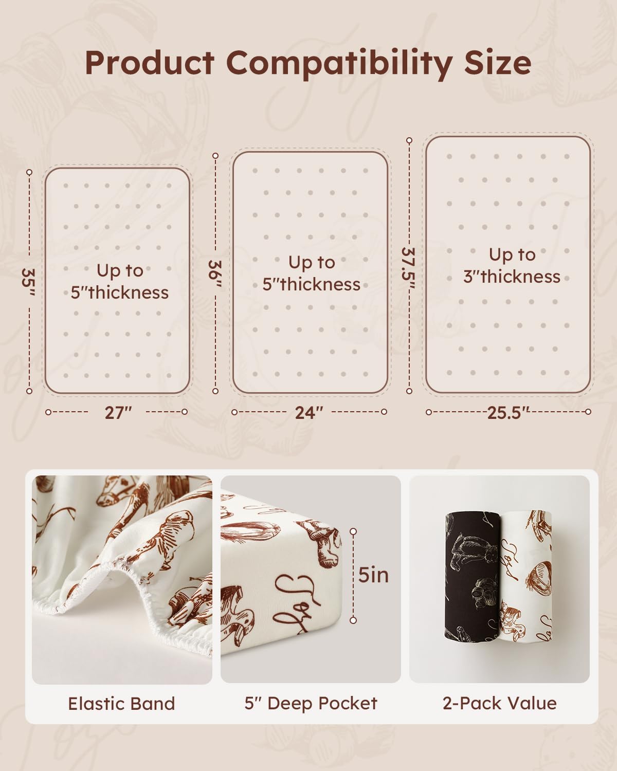 - Snug Fit and Secure: Measuring 38"x26", Yoofoss mini crib sheets are designed to snugly fit most Pack n Play or potable playard mattress.The 3–5 inch deep pocket provides full coverage that wraps around the mattress to keep the sheet neatly in place, ensuring a safe and comfortable sleep for your baby.