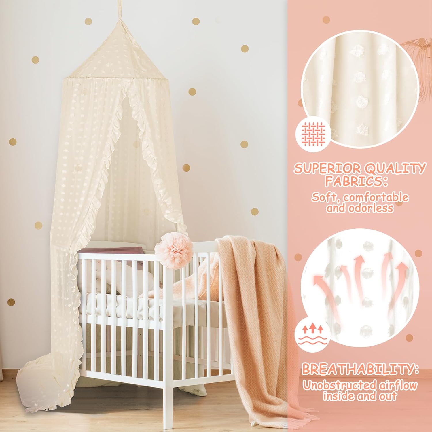 Princess Bed Canopy for Girls - Crib Canopy for Bed - Mosquito Net for Bed, Kids Bed Canopy with Princess Room Decor for Girls Bedroom,Children's Reading Room Decor (Beige)