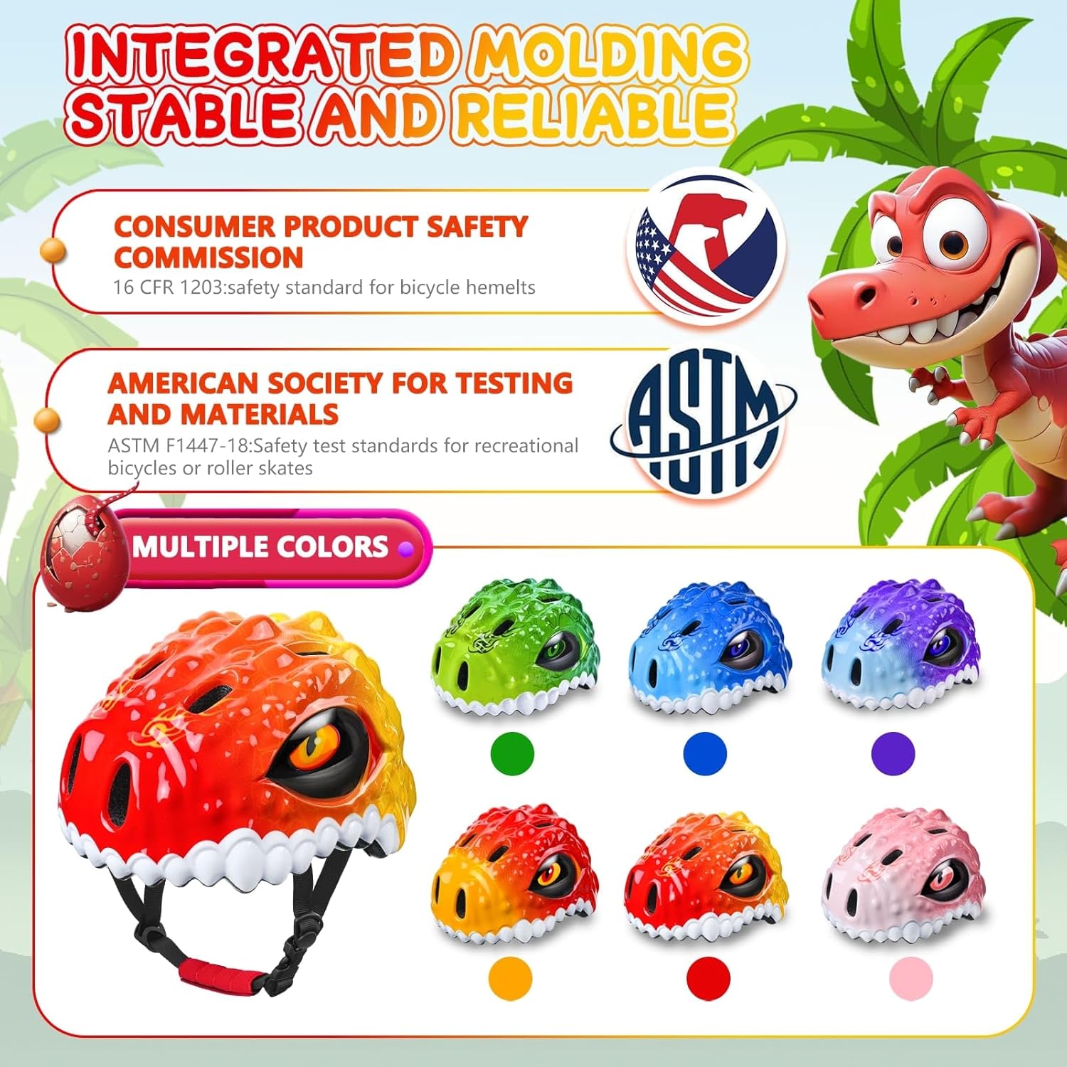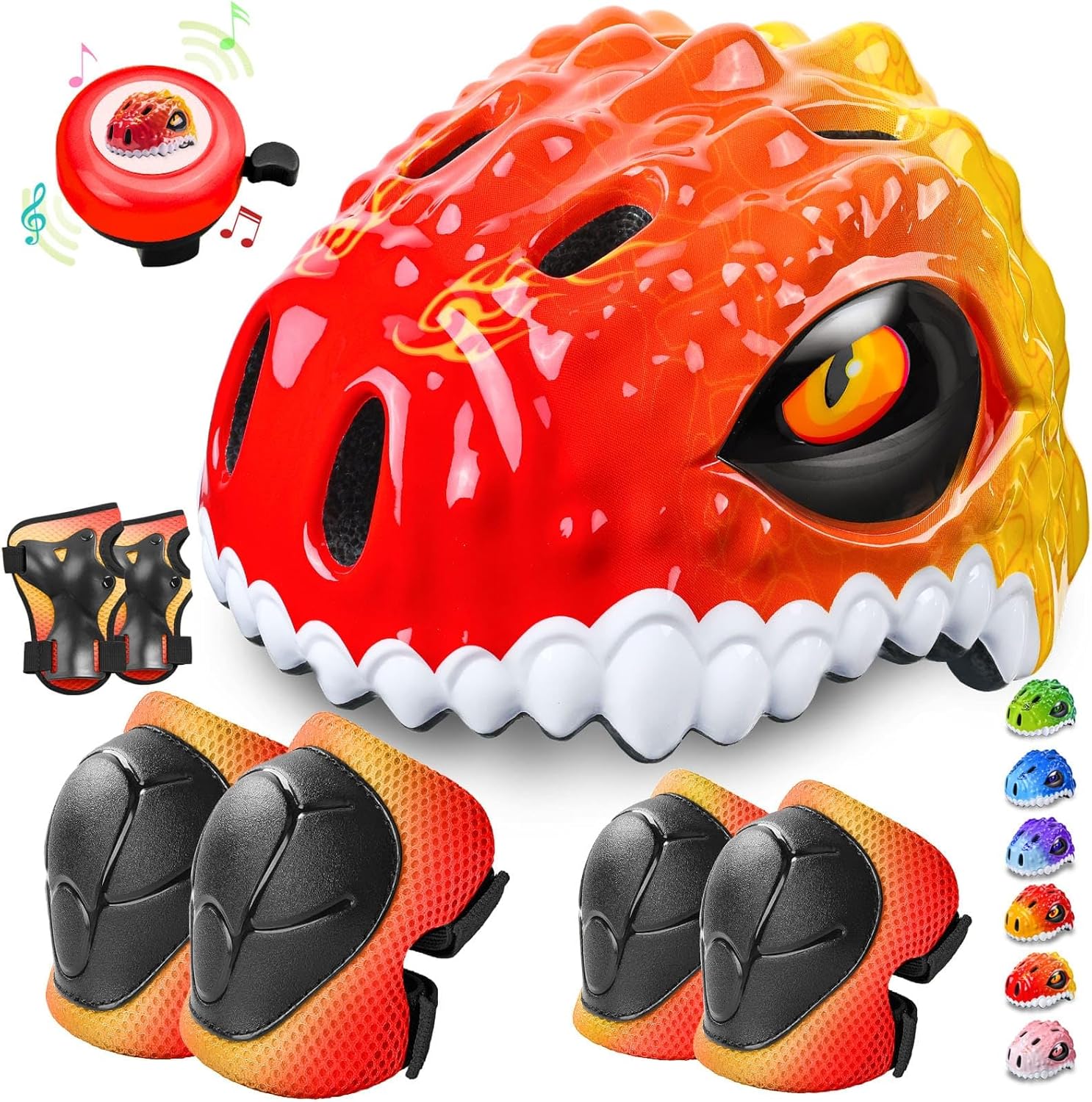 Toddler/Kids Bike Helmet Set for Boys Girls 3D Adjustable Kids Helmet Protective Gear Set Knee Elbow Wrist Pads and Multi-Sports Skateboard Scooter Cycling Roller Balance Bike