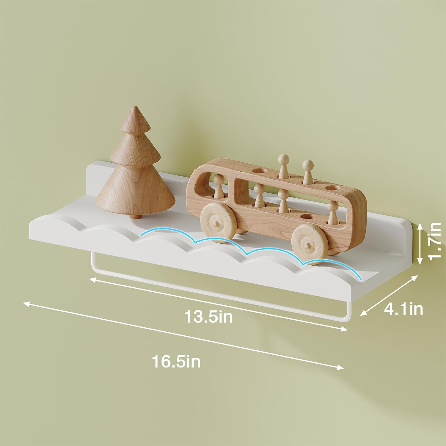 Fixwal Nursery Shelves, 16.5 Inch Floating Bookshelves for Wall Set of 4, Scalloped Wall Book Shelves with Towel Rack for Kids, Toddler Room, Baby Room, Nursery Decor and Storage(White)
