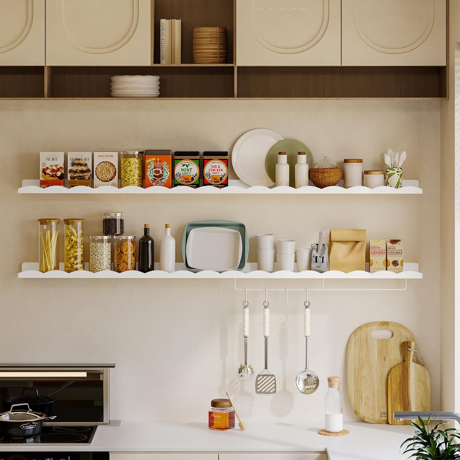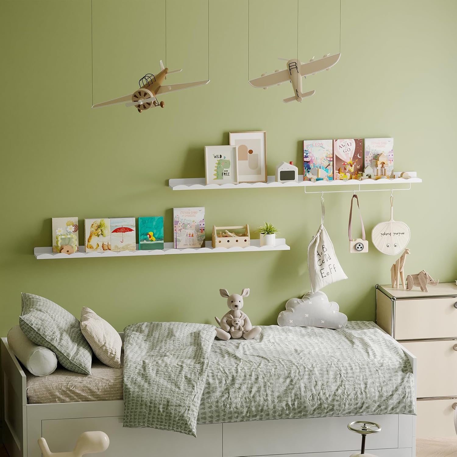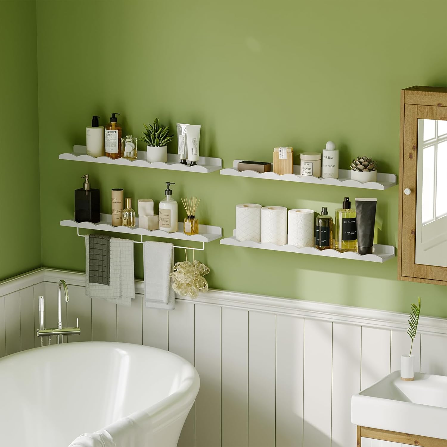 Fixwal Nursery Shelves, 24 Inch Floating Bookshelves for Wall Set of 4, Scalloped Wall Book Shelves with Towel Rack for Kids, Toddler Room, Baby Room, Nursery Decor and Storage(White)
