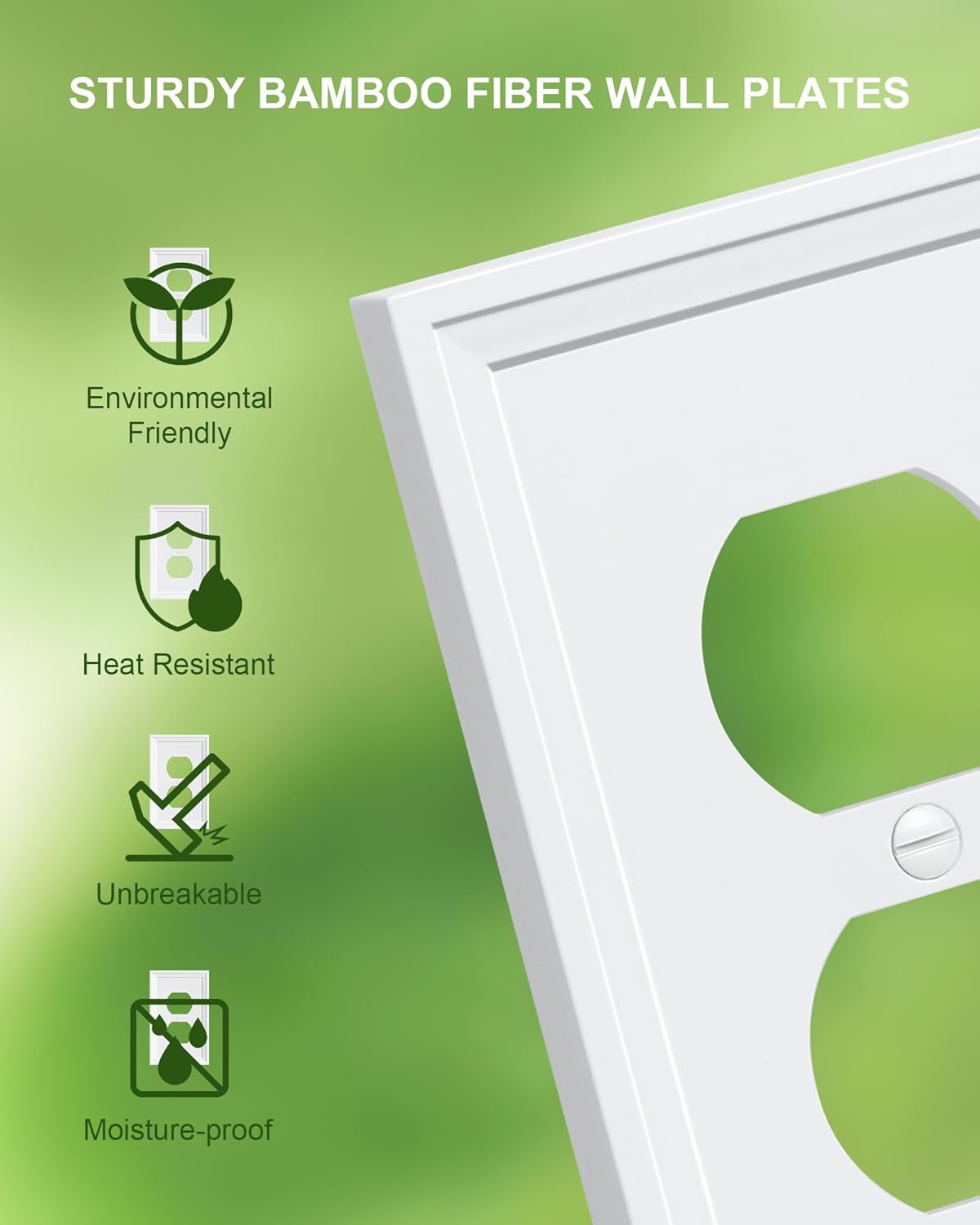 6-Pack Duplex Outlet Cover, Natural Bamboo Fiber Switch Plates and Outlet Covers, White Decorative Wall Plates for Electrical Outlets, 1 Gang Receptacle Cover, Corrosion Resistant