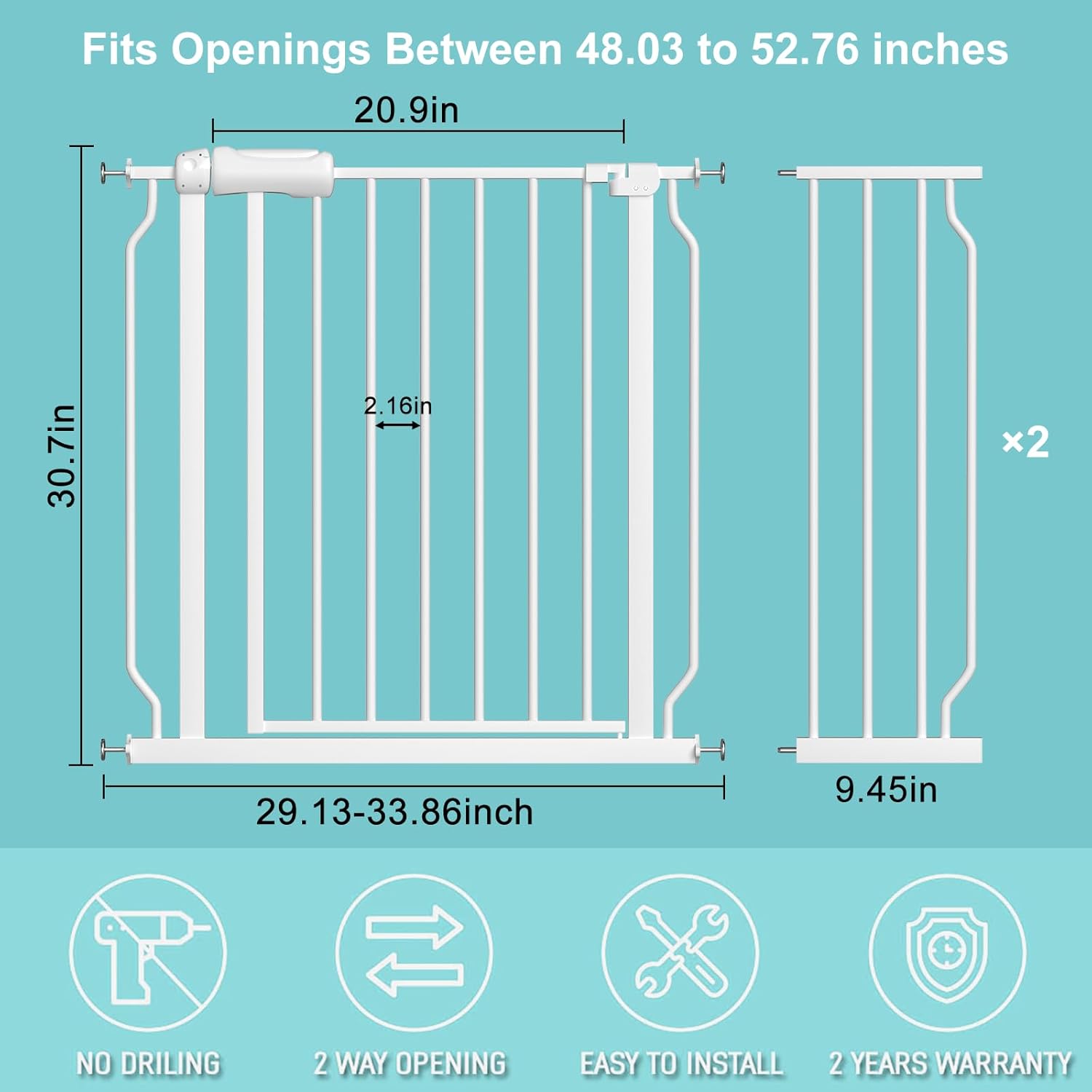 - 【Easy to install】 Our no drill baby gate comes with 4 adjustable pressure bolts, which is very easy for quick installation: no tools required, no need for drilling holes and no damage to your house wall.Extra wide pressure mounted baby gate can also quickly be removed out of the opening for easy storage.If you have any problems when installing, feel free to contact us.