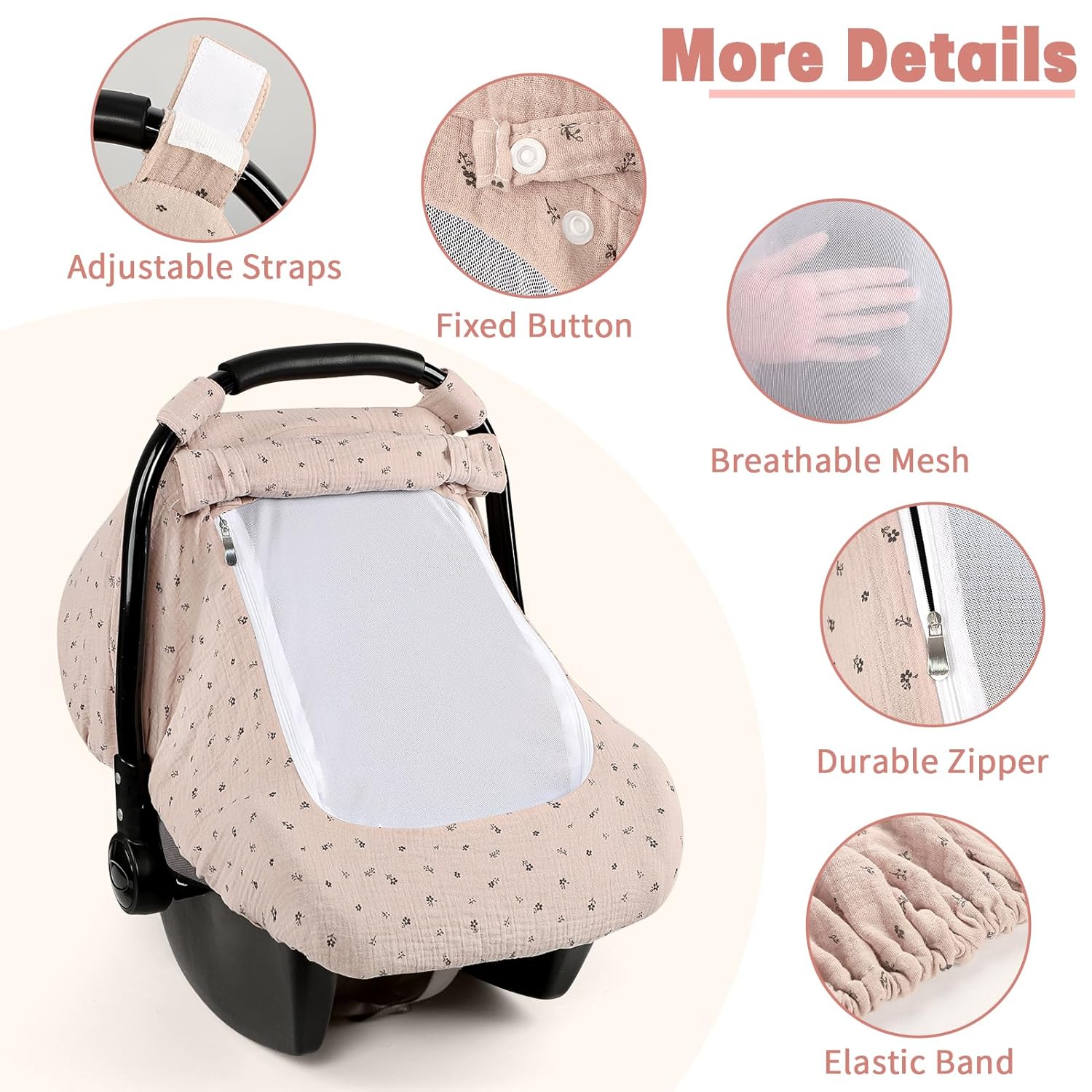 - Perfect Baby Essentials: Featuring a stylish and practical design, our baby car seat covers are styled with a simple and beautiful floral pattern that is essential for your baby registry. This muslin car seat cover is packaged in a beautiful box, making it an ideal gift for new moms and babies