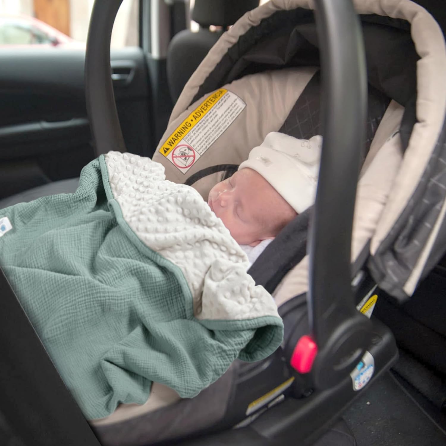 - Lightweight Dual-Fabric Design: Muslin & Minky Dot - Features a breathable muslin front and a warm minky fleece back. The lightweight, double-layer construction balances airflow and thermal retention, ideal for naps or daily cuddling.
