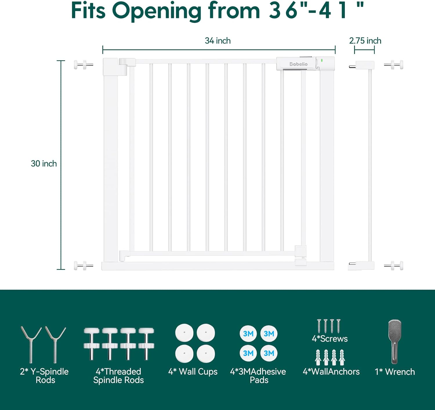 BABELIO Baby Gate for Doorways and Stairs, 36-41" Pet Gate with Wide Walk Thru Door and Lock Indicator, No Drill Pressure Mounted Safety Gate with Double Lock and Self-Closing, White