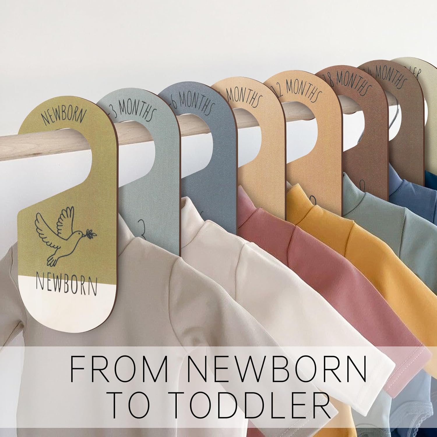 Baby Closet Dividers for Clothes Organizer - Set of 8 Wooden Double-Sided Baby Clothes Size Dividers form Newborn to Toddler for Daily Gender-Neutral Baby Nursery Decor