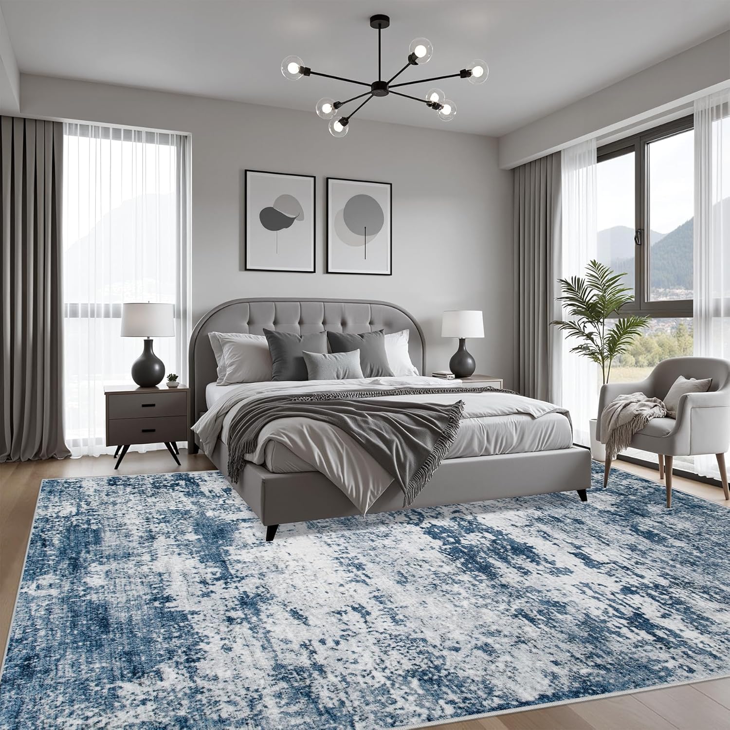 6x9 Area Rug Living Room Rug: Washable Modern Abstract Soft Thin Rug Indoor Floor No Slip Stain Resistant Carpet for Bedroom Dining Room Farmhouse Nursery Home Office - Blue
