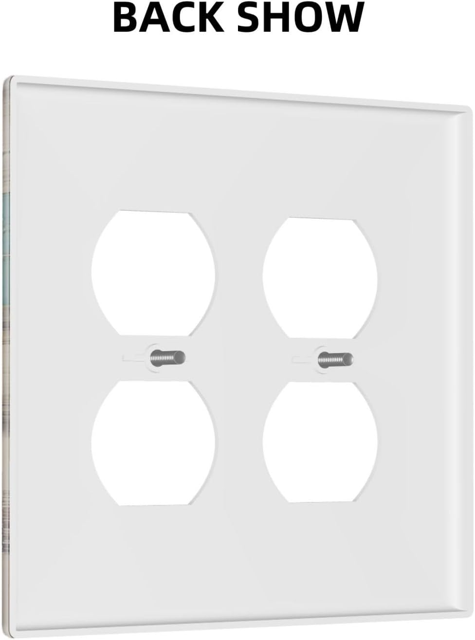 Outlet Covers Vintage Wood Brown Turquoise Splicing 2 Gang Double Duplex Decorative Light Switch Covers Electrical Wallplates Socket Faceplate For Farmhouse Cabin Decor
