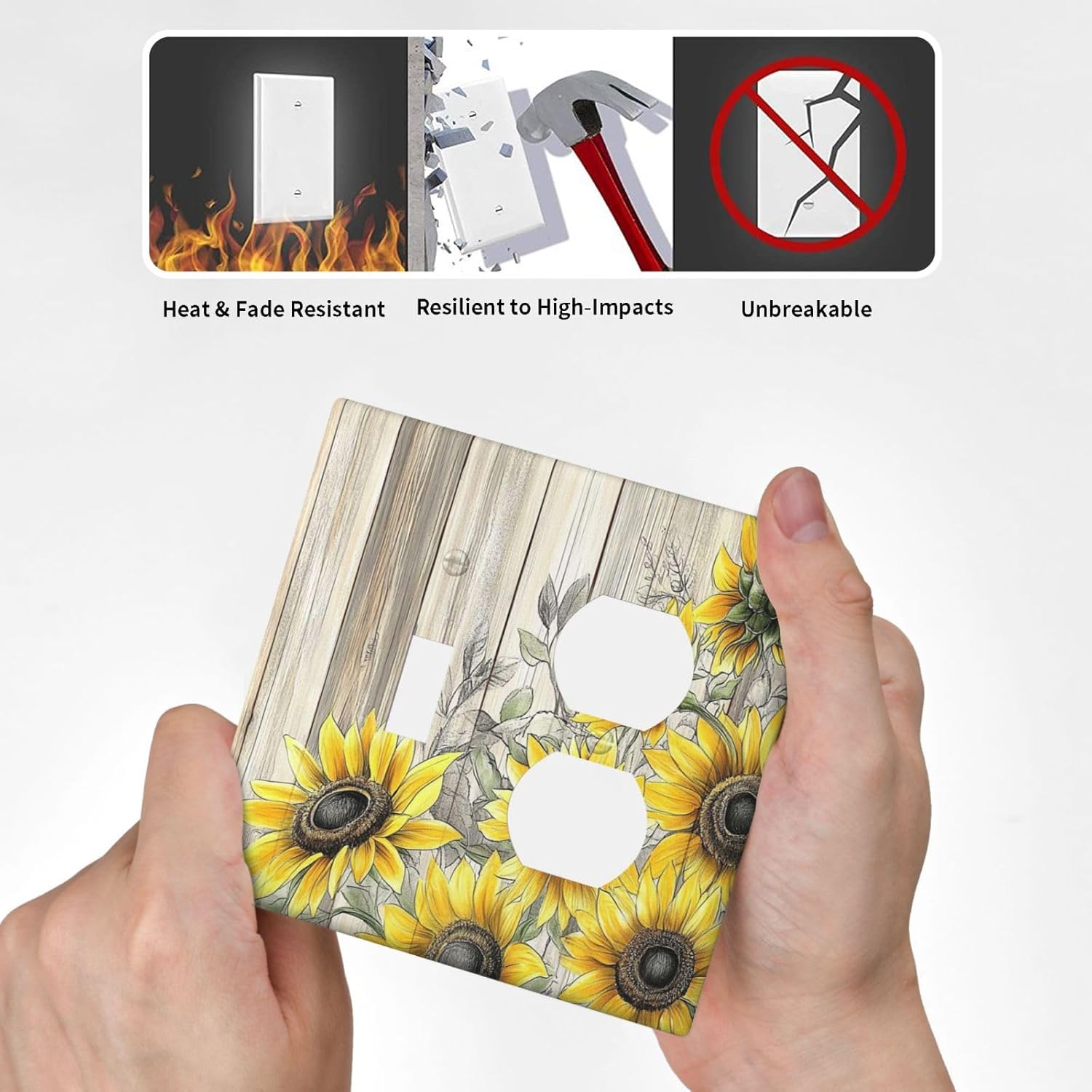 Wallplates Floral Sunflower Rustic Flower Vintage Wood 1 Toggle 1 Duplex Switch Plate Electrical Gfci Faceplate Decorative Light Switch Covers For Farmhouse Cabin Decor