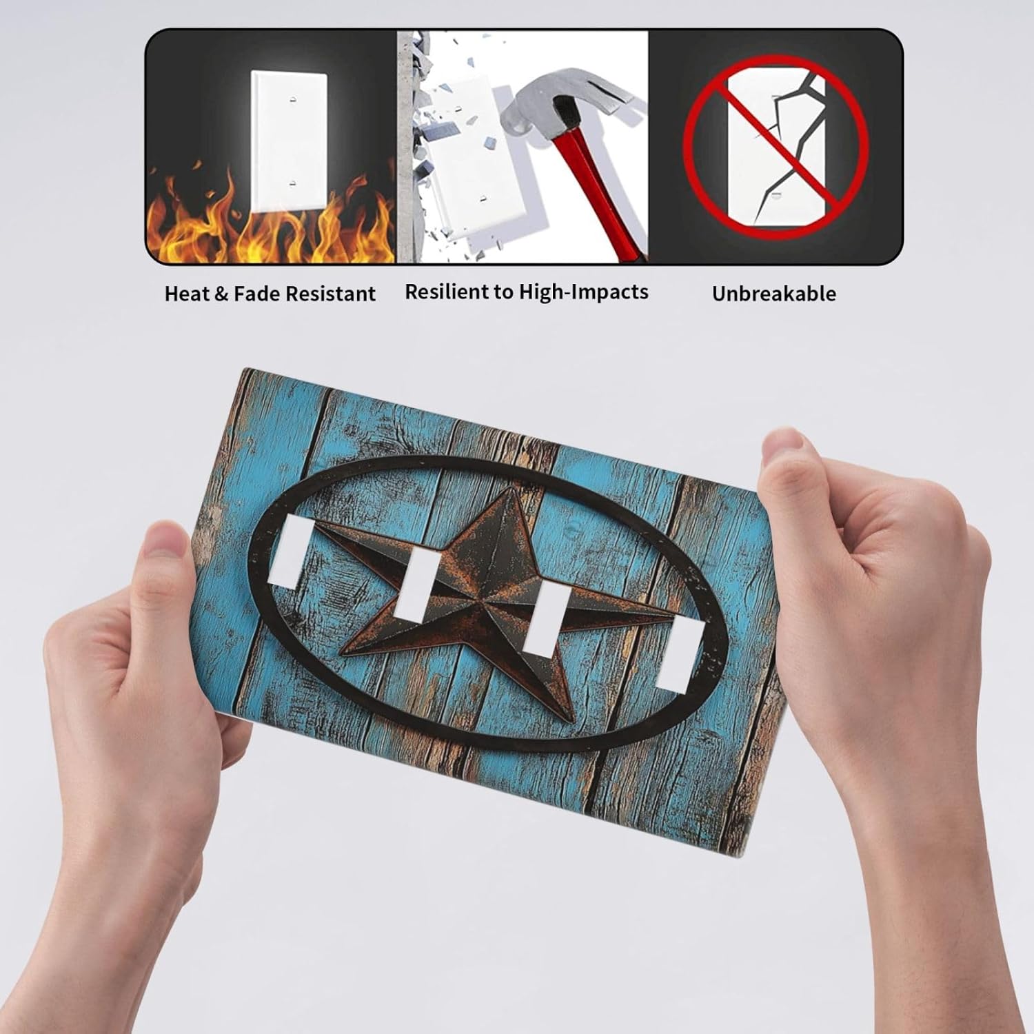 Light Switch Covers Rustic Wood Country Barn Texas Star On Teal Quad Toggle Electrical Faceplate 4 Gang Wall Plate Decorative Switch Plates For Farmhouse Cabin Decor