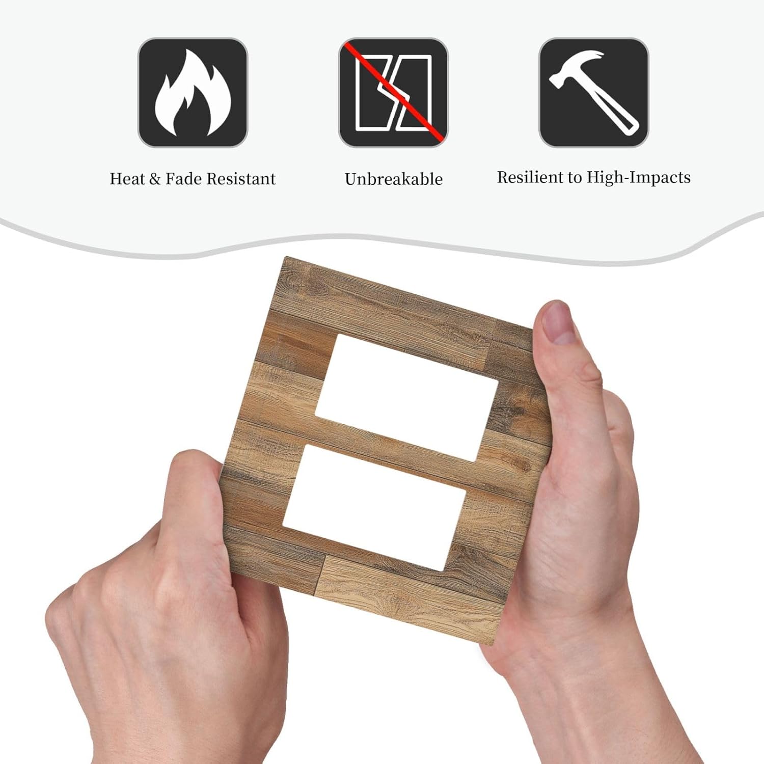 Decorative Outlet Covers Retro Rustic Brown Wood Grain 2 Gang Double Gfci Rocker Electrical Wall Panels Light Switch Cover Plate For Farmhouse Cabin Decor