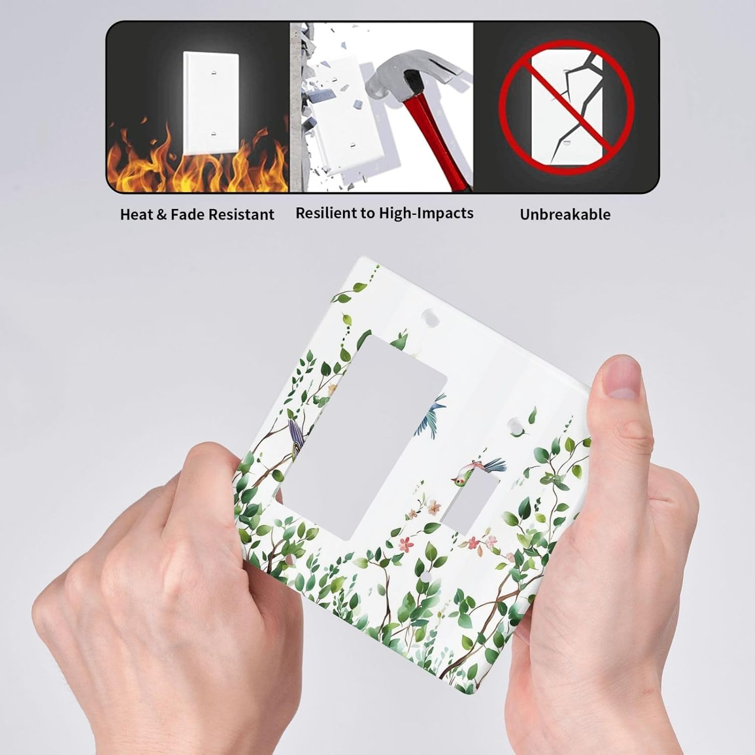 Outlet Covers Green Leaves Bird Eucalyptus Sage Plant 1 Toggle 1 Rocker Combination Decorative Wall Plate Electrical Switch Plates Light Switch Cover Plate For Bed Room Living Room Decor