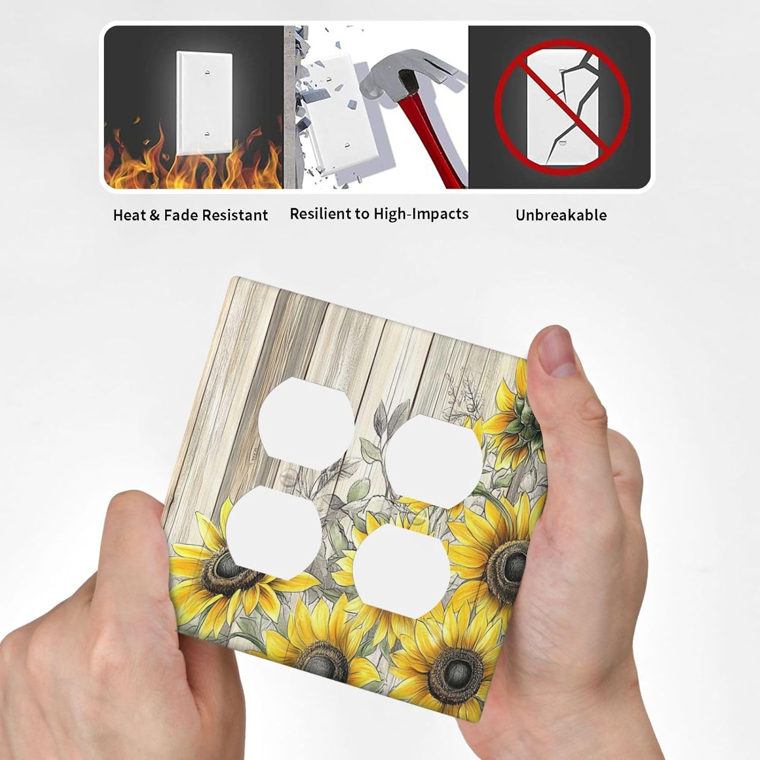 Outlet Covers Floral Sunflower Rustic Flower Vintage Wood 2 Gang Double Duplex Decorative Light Switch Covers Electrical Wallplates Socket Faceplate For Farmhouse Cabin Decor