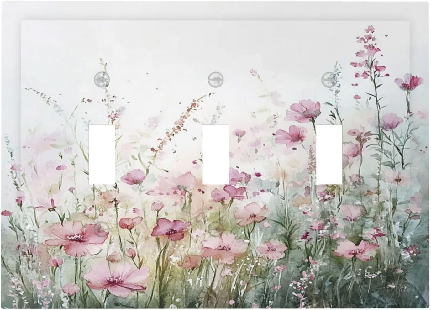 Decorative Switch Plates Wildflower Botanical Watercolor Floral 3 Gang Wall Plate Triple Toggle Light Switch Cover Faceplate Electrical Wall Panels For Bed Room Living Room Decor