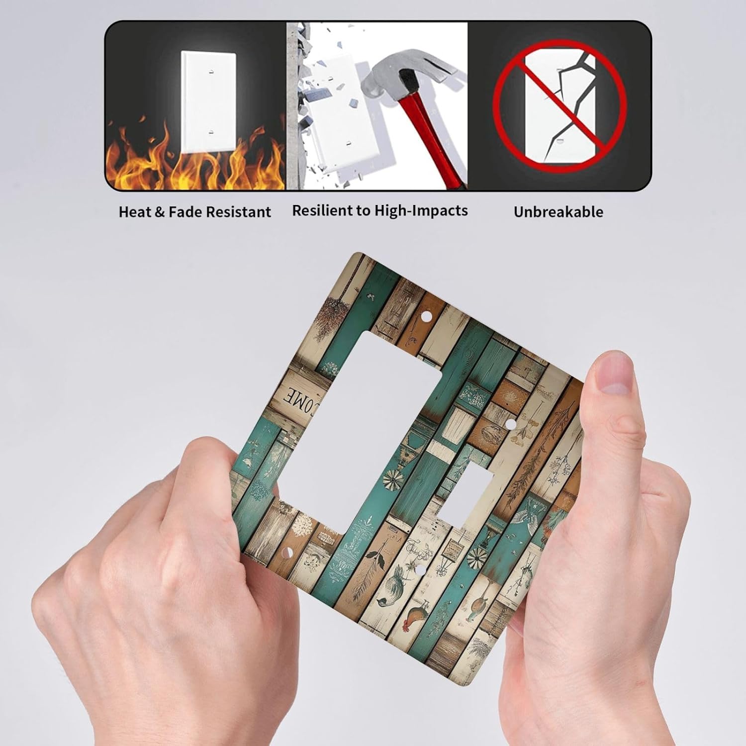 Outlet Covers Vintage Wood Brown Turquoise Splicing 1 Toggle 1 Rocker Combination Decorative Wall Plate Electrical Switch Plates Light Switch Cover Plate For Farmhouse Cabin Decor