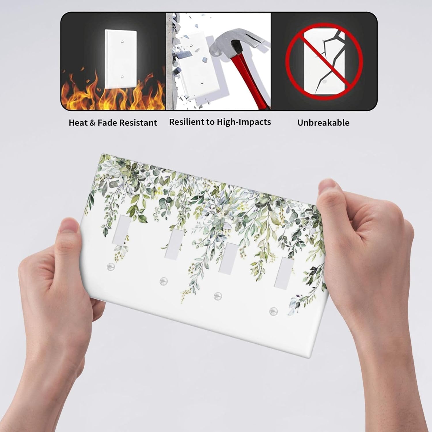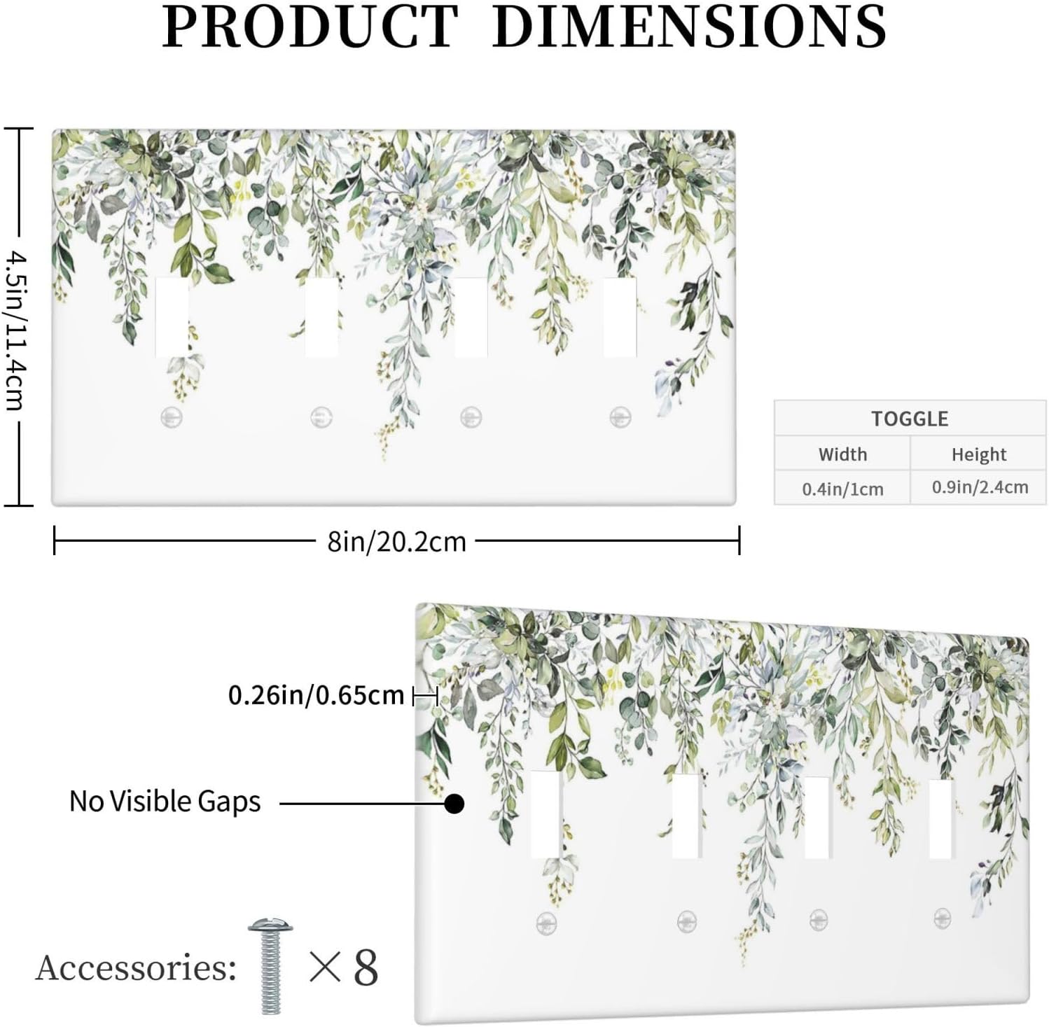 Light Switch Covers Boho Farmhouse Flower Leaf Sage Green Quad Toggle Electrical Faceplate 4 Gang Wall Plate Decorative Switch Plates for Bedroom Cabin Decor