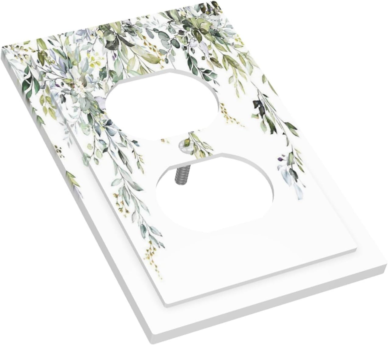 Outlet Covers Boho Farmhouse Flower Leaf Sage Green 1 Gang Duplex Wall Plate Decorative Switch Plates Electrical Receptacle Faceplate Light Switch Cover for Bedroom Cabin Decor