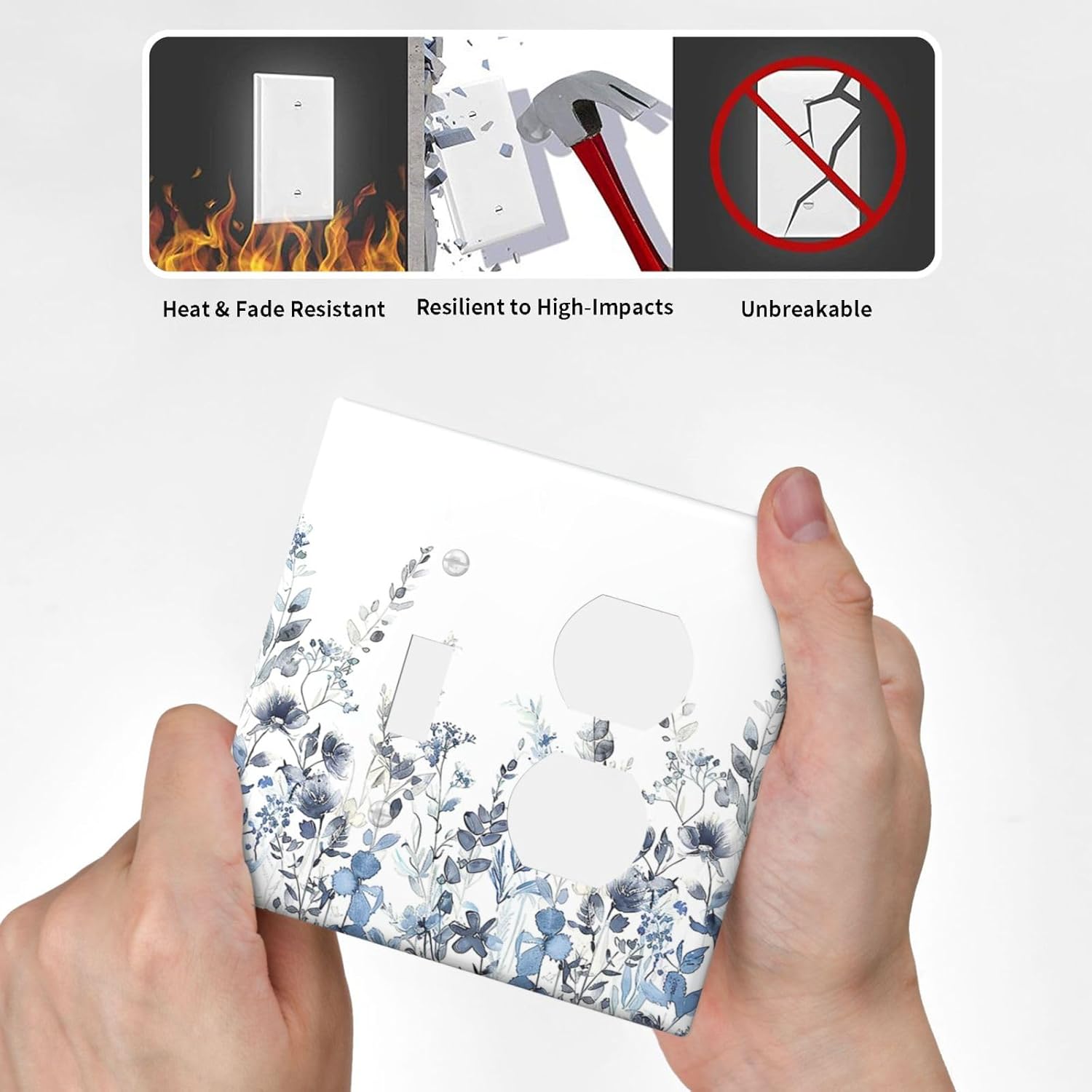 Wallplates Light Blue Watercolor Leaves Plant With Floral 1 Toggle 1 Duplex Switch Plate Electrical GFCI Faceplate Decorative Light Switch Covers for Bedroom Bathroom Decor