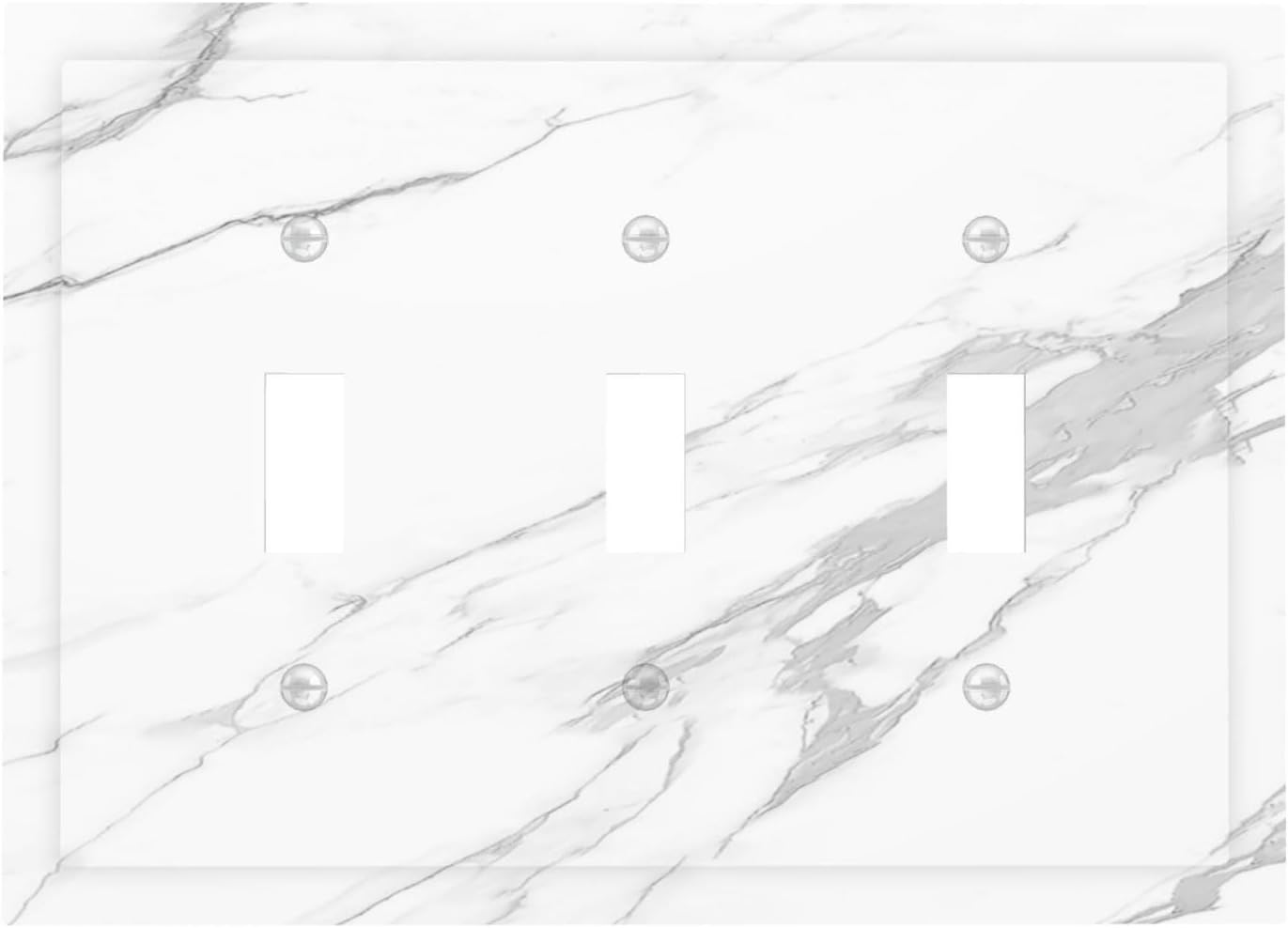 Decorative Switch Plates Modern White Gray Marble 3 Gang Wall Plate Triple Toggle Light Switch Cover Faceplate Electrical Wall Panels for living Room Bathroom Decor