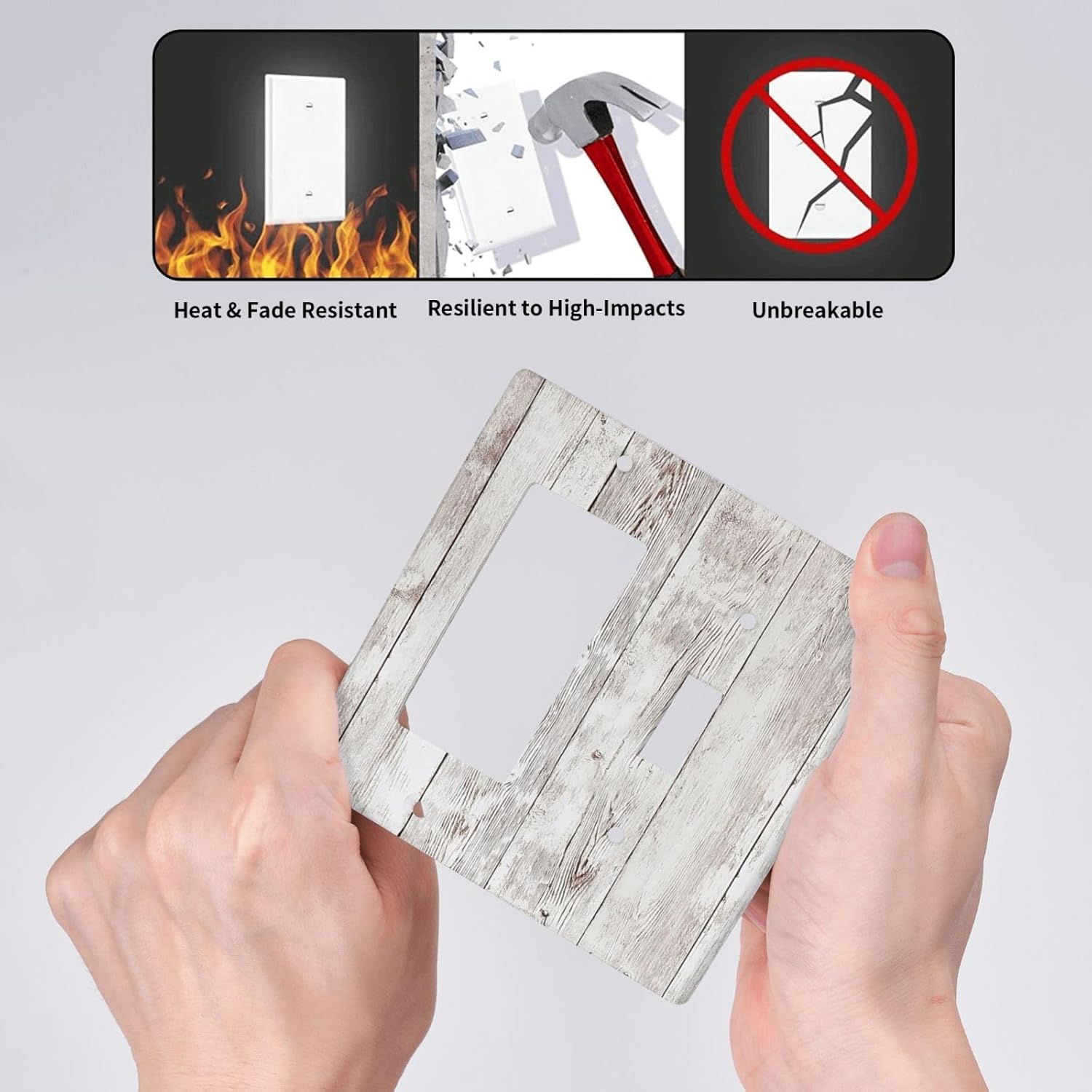 Outlet Covers Rustic Vintage White Wood Grain 1 Toggle 1 Rocker Combination Decorative Wall Plate Electrical Switch Plates Light Switch Cover Plate for Farmhouse Home Decor