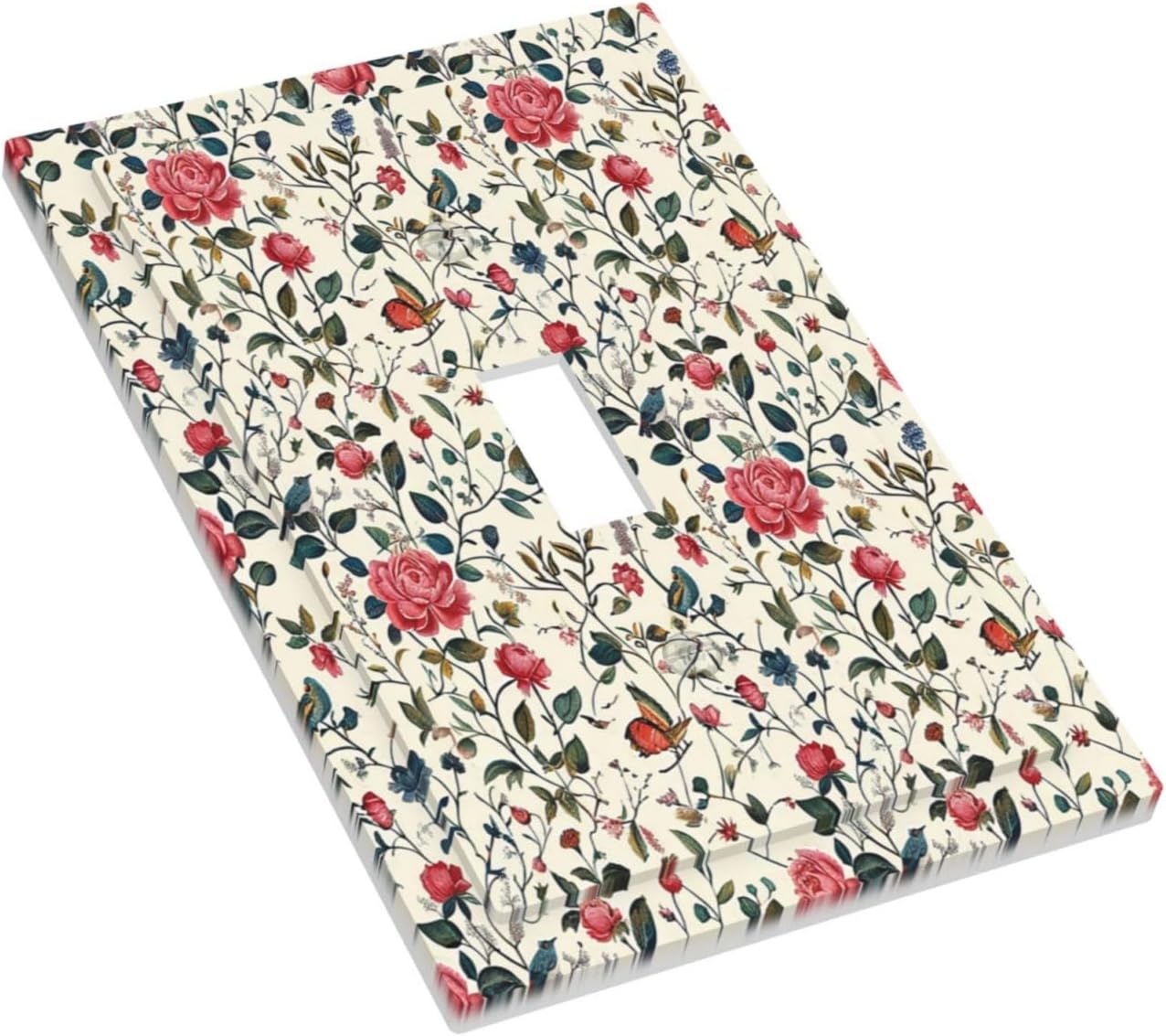 Decorative Light Switch Cover Vintage Flowers Rose Leaf Bird Butterfly 1 Gang Single Toggle Device Electrical Faceplate Switchplates Decorator Outlet Wall Plate for Bedroom living Room Decor