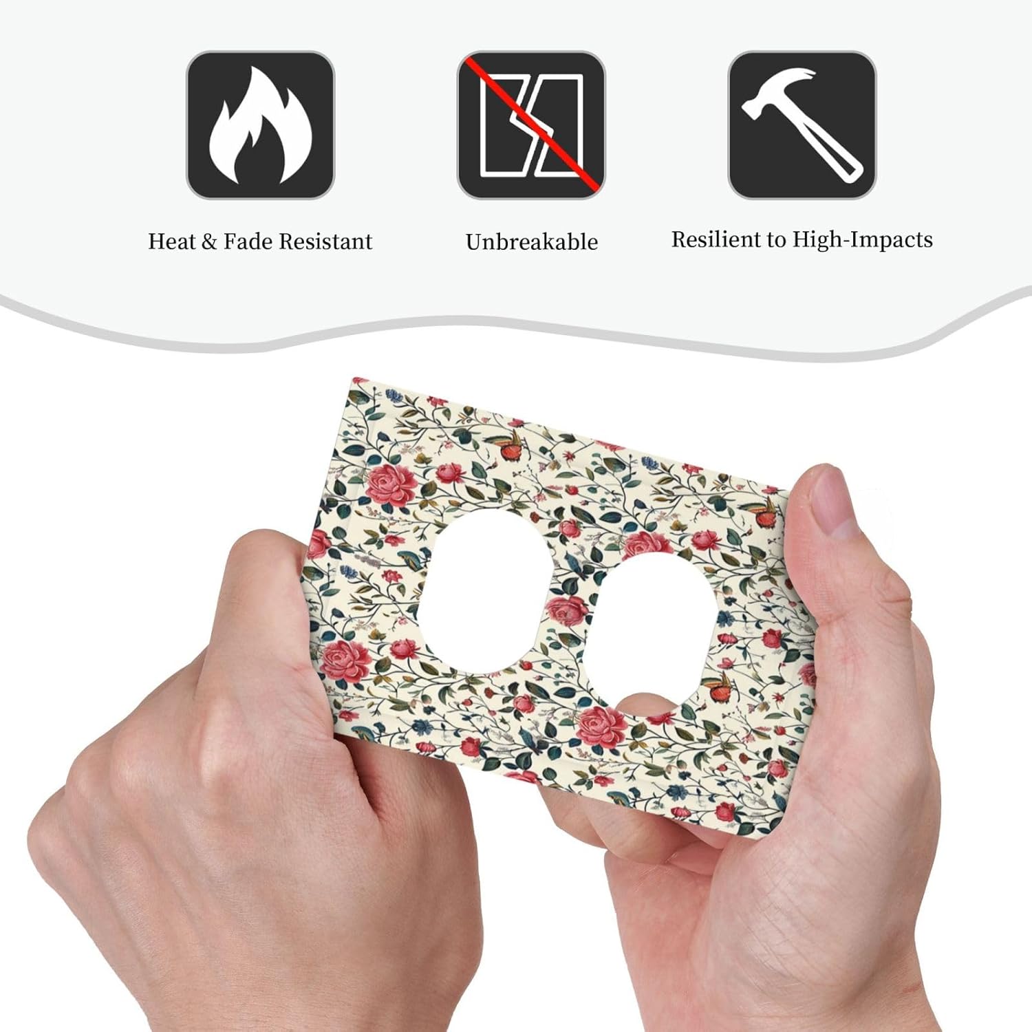 Outlet Covers Vintage Flowers Rose Leaf Bird Butterfly 1 Gang Duplex Wall Plate Decorative Switch Plates Electrical Receptacle Faceplate Light Switch Cover for Bedroom living Room Decor